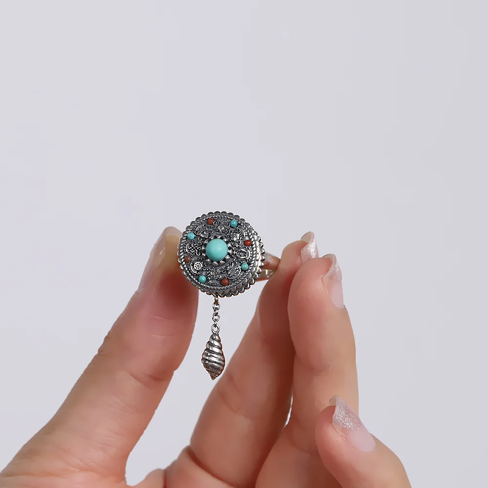 Uglyless винтажные этнические RUYI кольца с бирюзой женские кольца ...