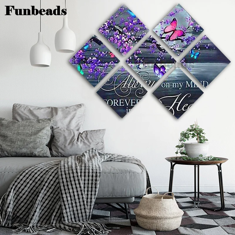 7 шт. бабочка цветок сливы Алмазная мозаика любовь, луна, текст, рисунок из бриллиантов по индивидуальному заказу, алмазов картина камни в форме ромбакруглый FF4368