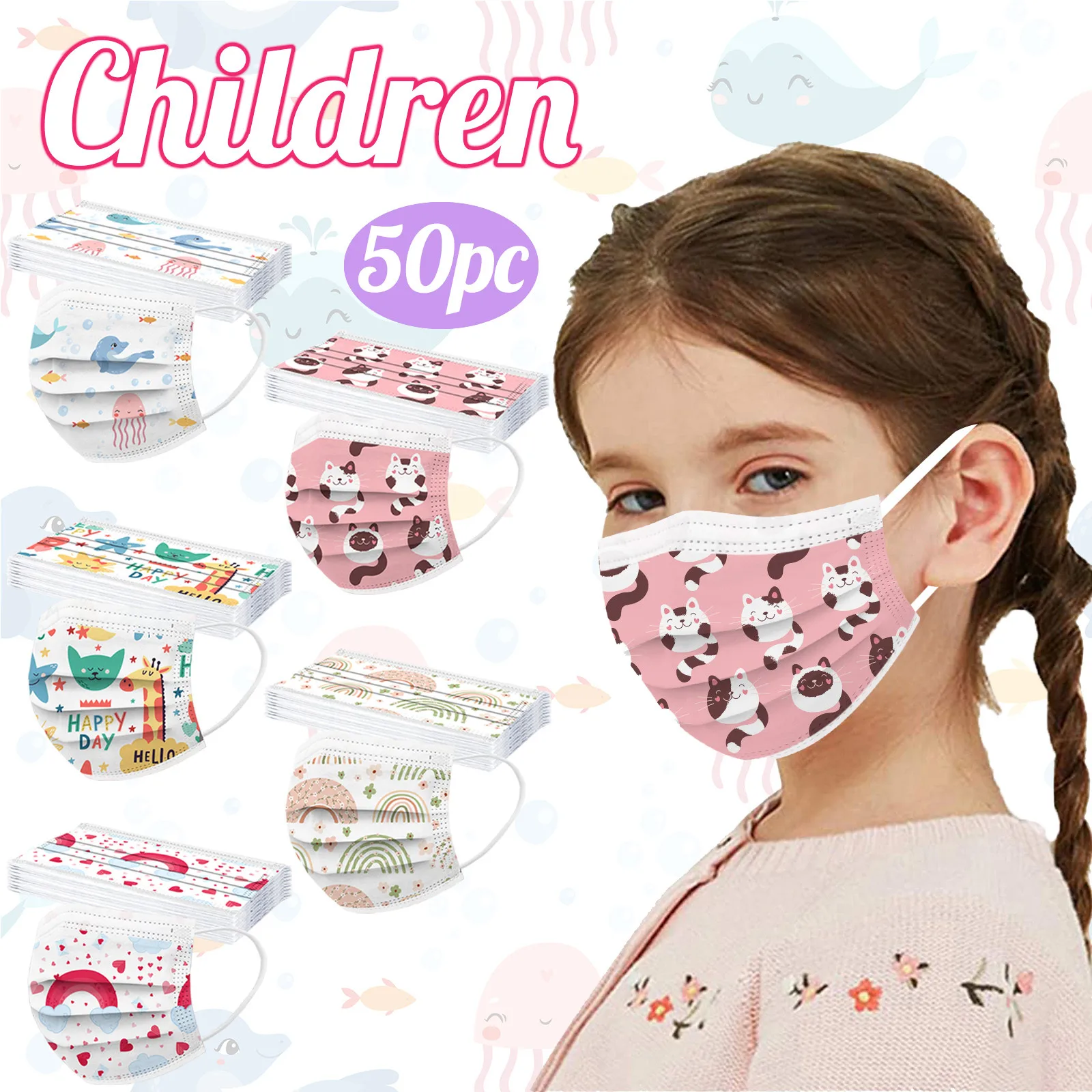 50 шт. в коробке Детский мультфильм одноразовые маски 3 Слои Детски...