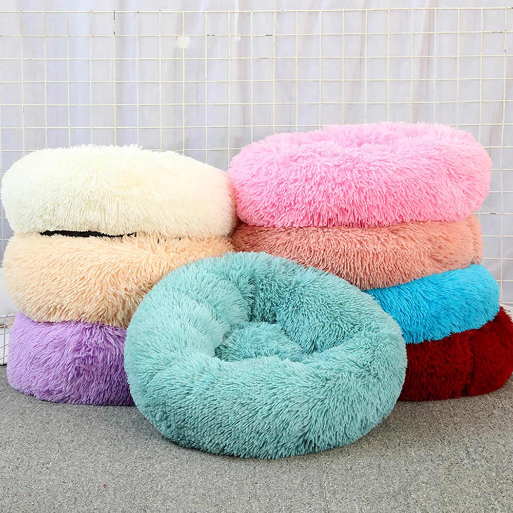 Длинная плюшевая супер мягкая собачья Лежанка для питомца, Круглый спальный диван, домик для кошки, зимняя теплая корзина для маленьких, средних и больших собак