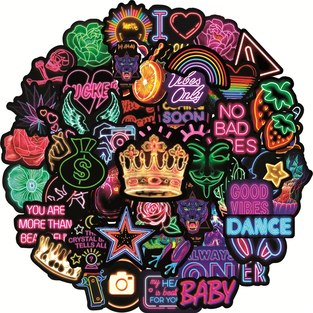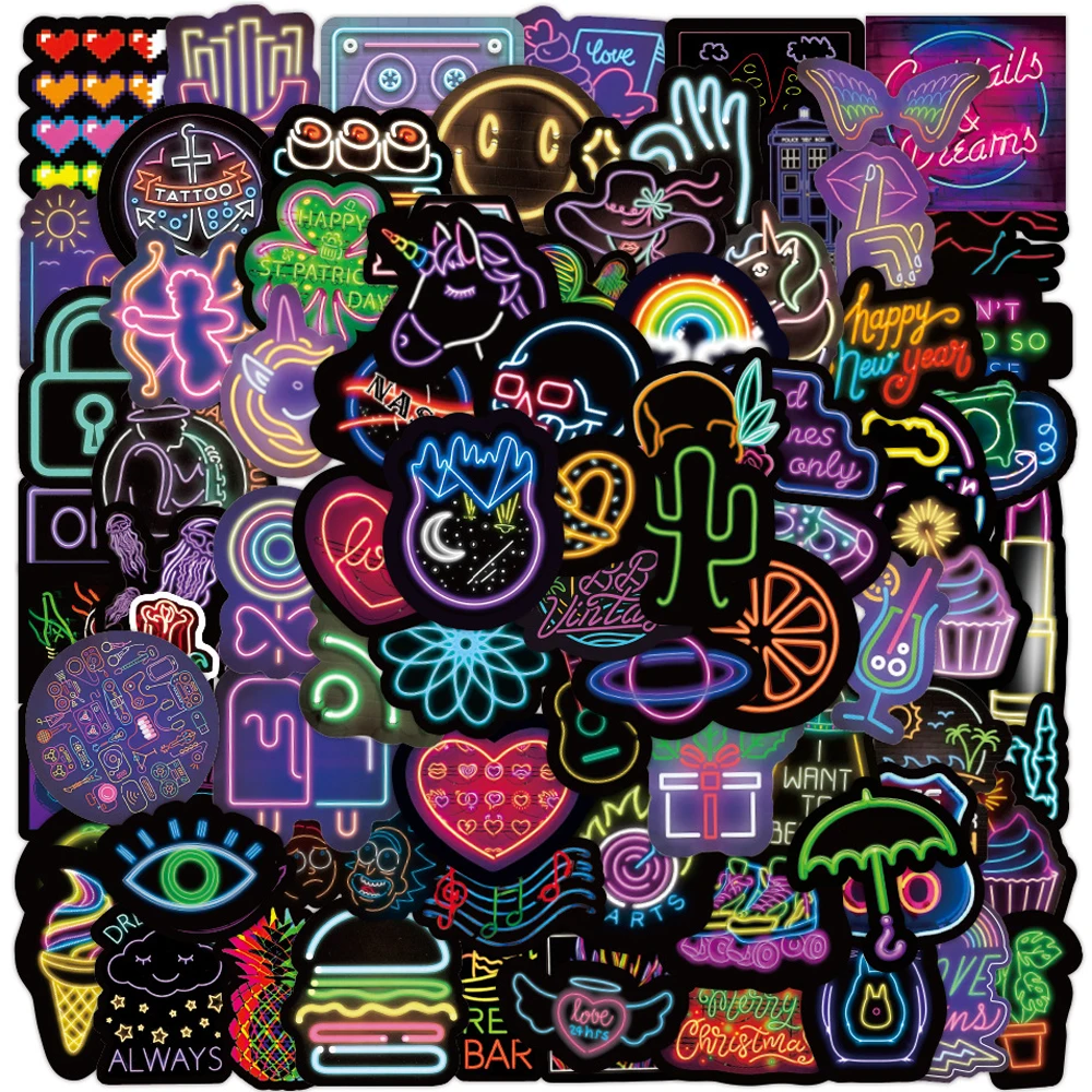 103050 шт крутые неоновые световые мультяшные наклейки эстетические...