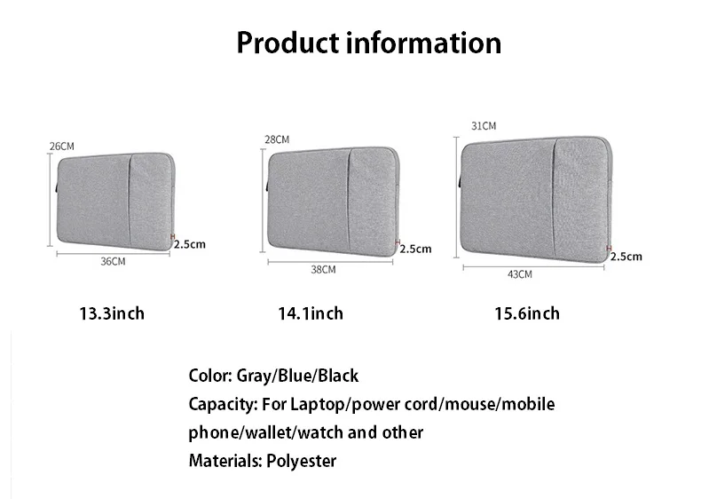 > Информация о продуктеНазвание: рукава для ноутбукаРазмер: 13,3/14,1/15,6 дюймовПрименимо: для Macbook Air ,Macbook Pro,Ноутбук Huawei Matebook, Lenovo ,Dell,HP.> О размереКогда вы размещаете заказ, пожалуйста, знайте вашРазмер ноутбука; Затем выберите правильный размер.