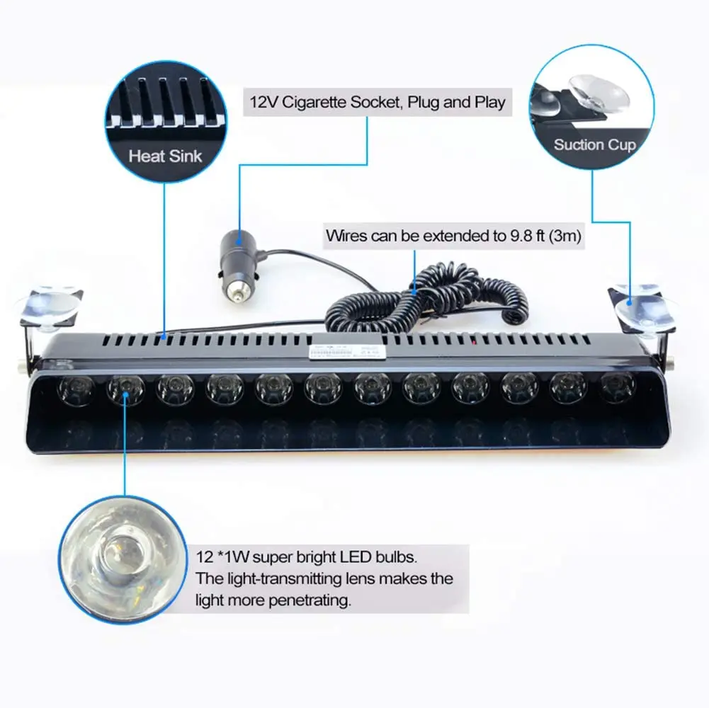 Консультант трафика аварийного автомобиля лобового стекла автомобиля стробоскоп Предупреждение светильник проблесковый маячок 15 режимов Светодиодный полиции мигает внимание лампы 12V