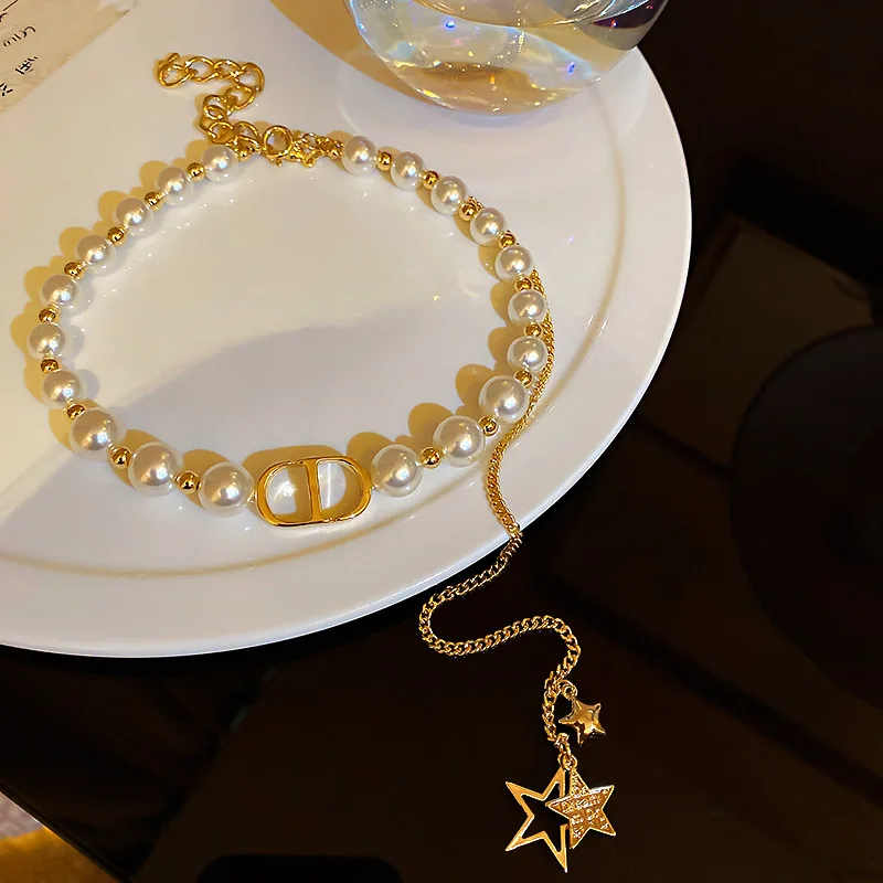 Новый дизайн, жемчужное ожерелье с пятиконечными звездами для женщин и девушек, объемный темпераментный кулон, простое искусственное украшение