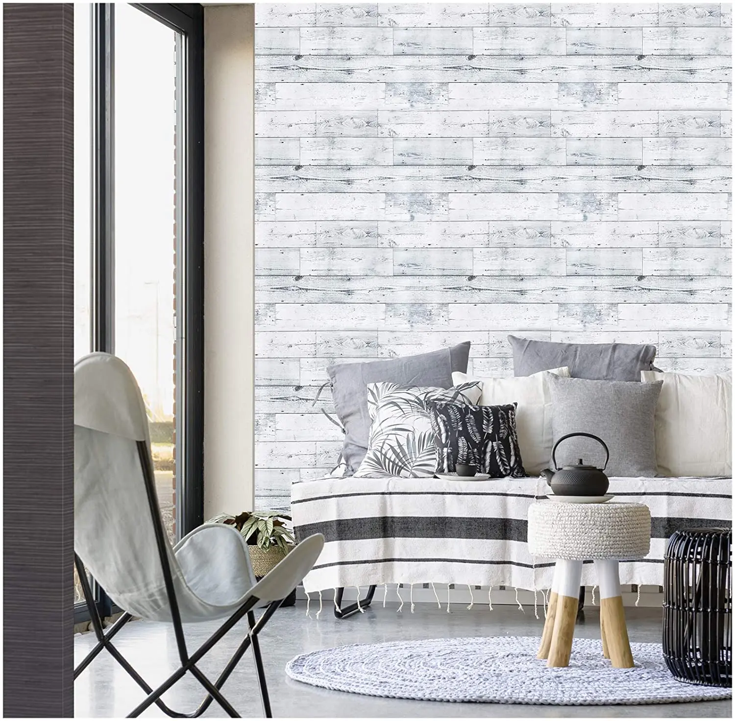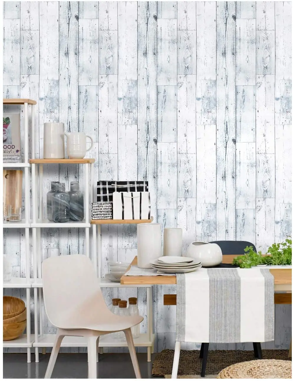 Самоклеящиеся обои Shiplap с изображением древесины, светло-серые/белые/синие, 45*600 см