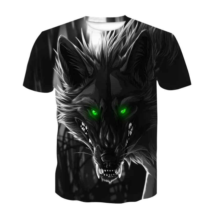 Мужская футболка с 3D принтом волка, светящийся с зелеными глазами, модная рубашка в стиле Харадзюку с короткими рукавами, летняя уличная одежда, футболки унисекс, топы