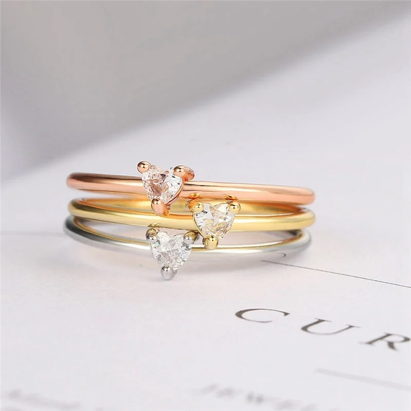 Модные циркониевые ювелирные изделия золотого цвета для женщин кольца в форме маленького сердца романтические