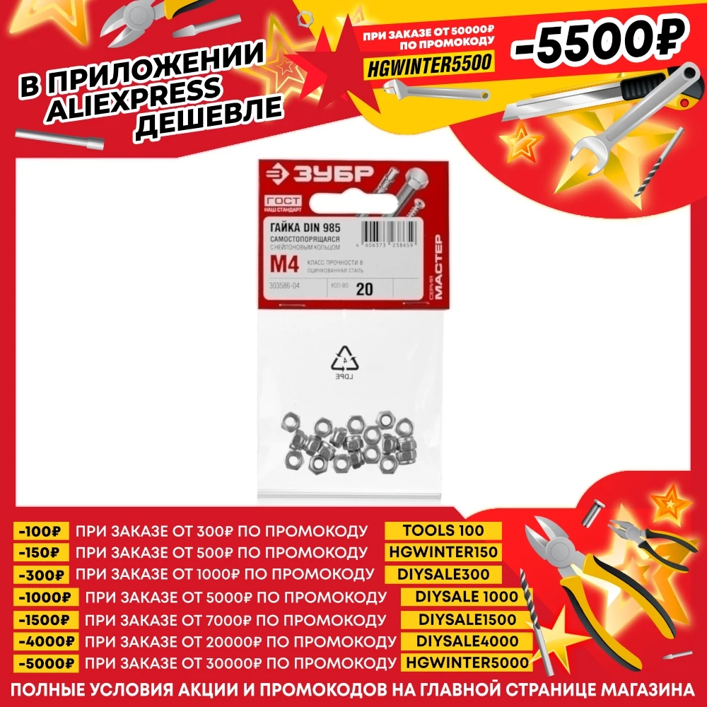 Гайка шестигранная самостопорящаяся с нейлоновым кольцом кл. пр. 6 DIN 985 M4 20 шт. ЗУБР 303586-04 - Гайки шестигранные с нейлоновым кольцом изготовлены из высококачественных материалов (сталь, нейлон) в полном соответствии с действующими стандартами и техническими предписаниями. Находят широкое применение в машиностроении, приборостроении, строительстве, быту и т.д..Преимущества:Нейлоновое кольцо предотвращает самопроизвольное раскручивание соединения;Класс прочности 6 обеспечивает необходимую жесткость конструкции;Цинковое покрытие надежно защищает от коррозии-Метрическая резьба (d): М4 -Размер под ключ (S): 7 мм-Высота гайки (h): 4.70-5.00 мм-Высота для захвата ключом (m1): мин. 2.20 мм-Длина резьбы (m): мин. 2.90 мм-Шаг резьбы: 0.7 мм-Диаметр описанной окружности (е): мин. 7.66 мм-Упаковка: 20 шт.Комплект поставки:Гарантия:0 месяцев