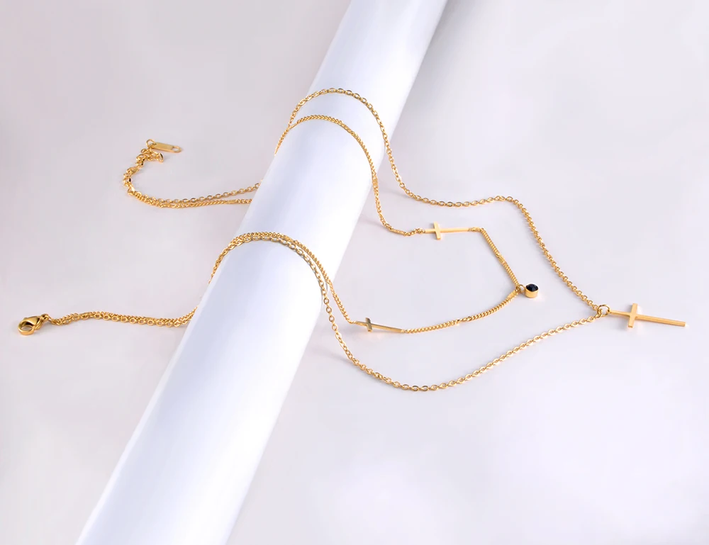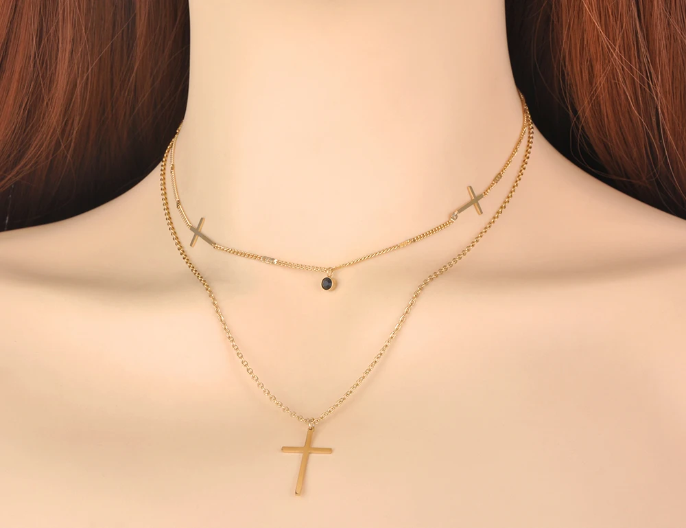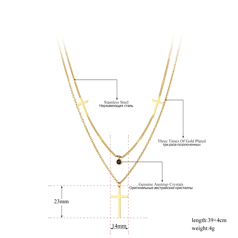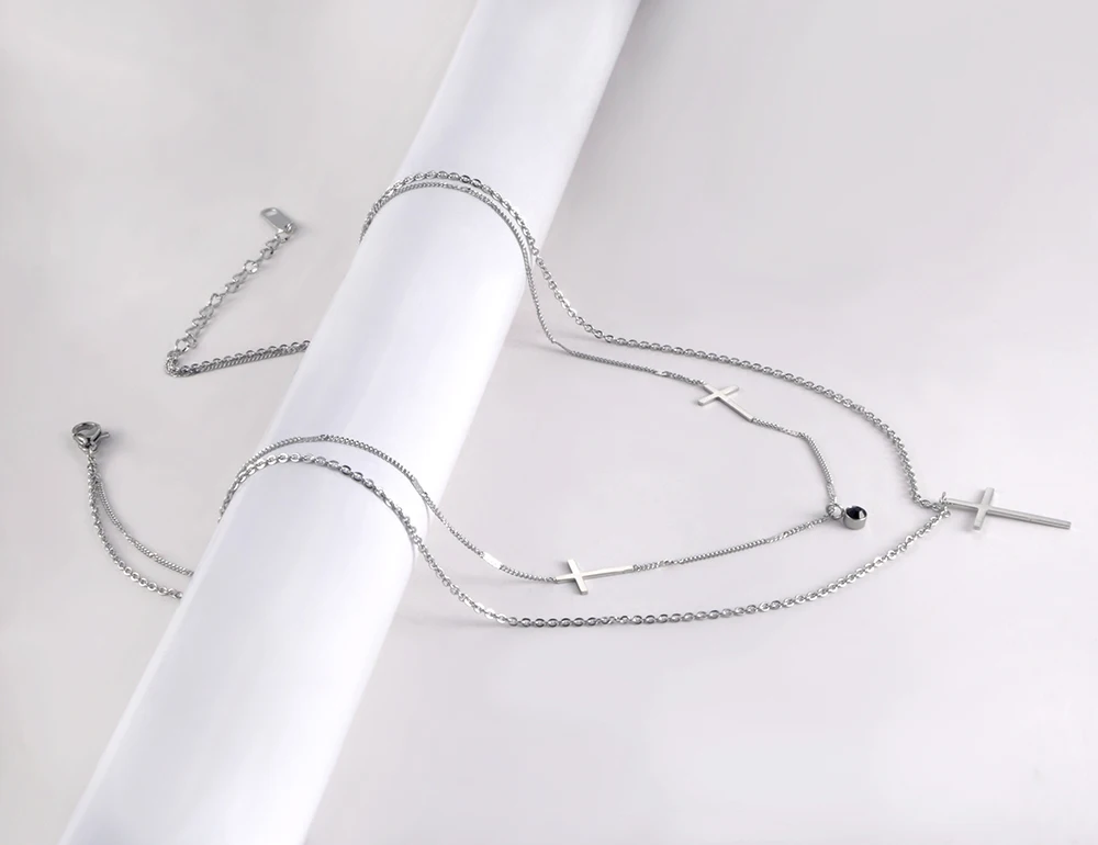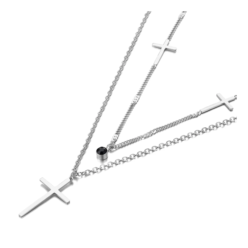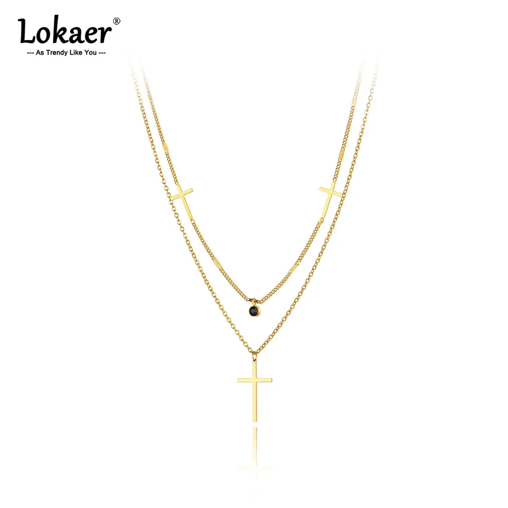 Lokaer Мода в богемном стиле из нержавеющей стали с двойным слоем черного цвета с украшением в виде кристаллов колье подвеска в виде крестика на шею, ювелирные изделия для женщин Цепочка N21061