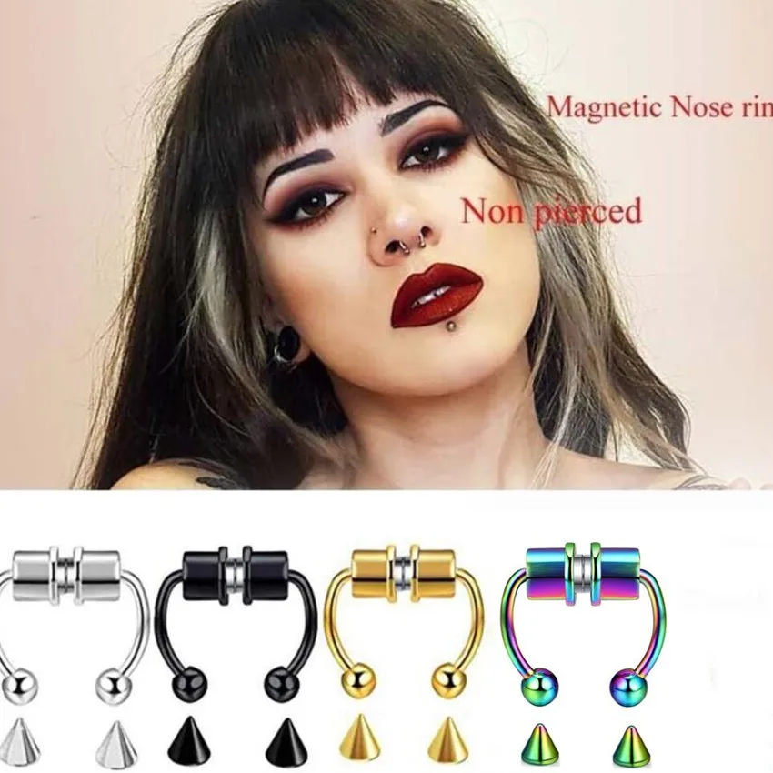 1 шт. U-образные поддельные клипсы для носа кольца для перегородки Кольца из нержавеющей стали магнит для игры на пляже имитация пирсинга пирсинг хип-хоп рок