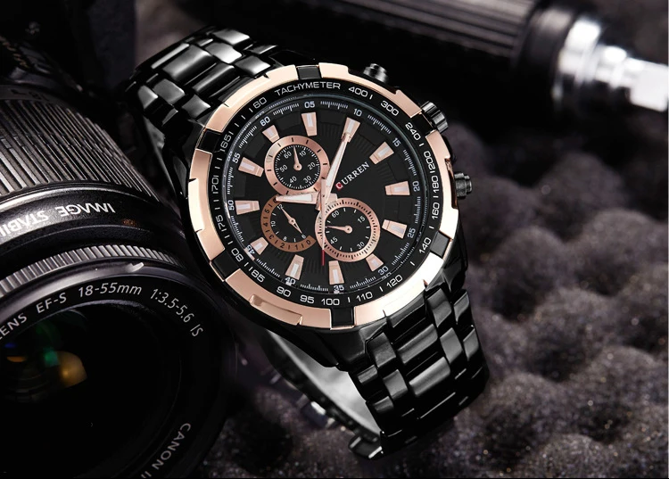 Мужские Аналоговые часы CURREN, черные, кварцевые, спортивные, со с...