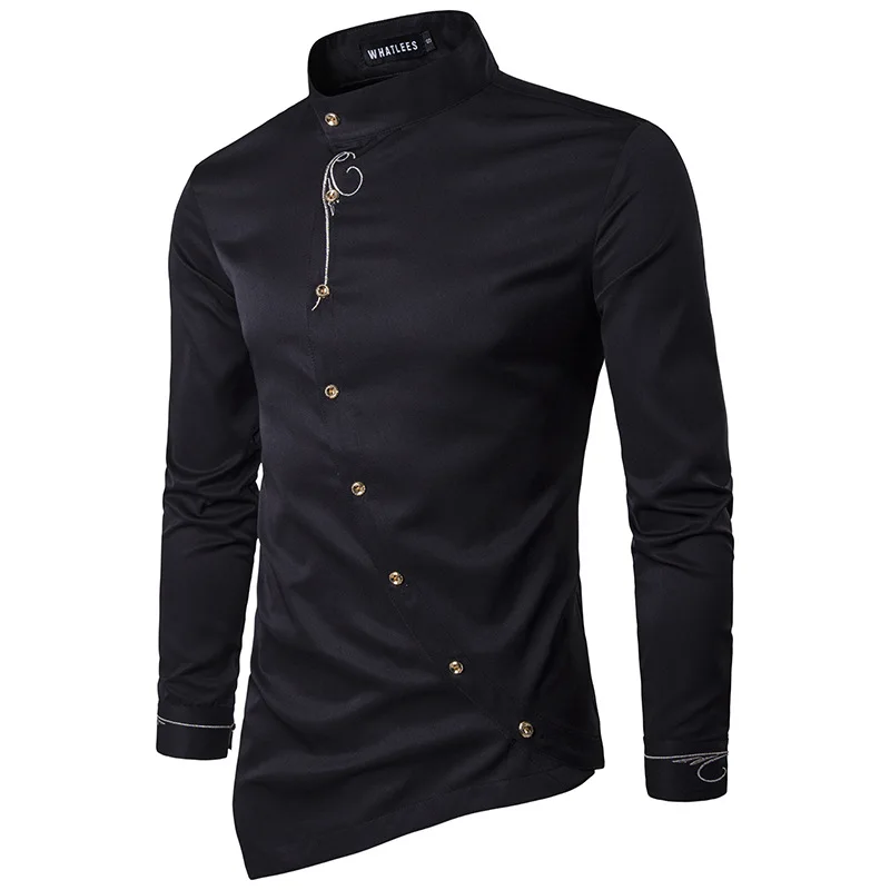 Мужская Асимметричная рубашка, повседневная приталенная рубашка с д...