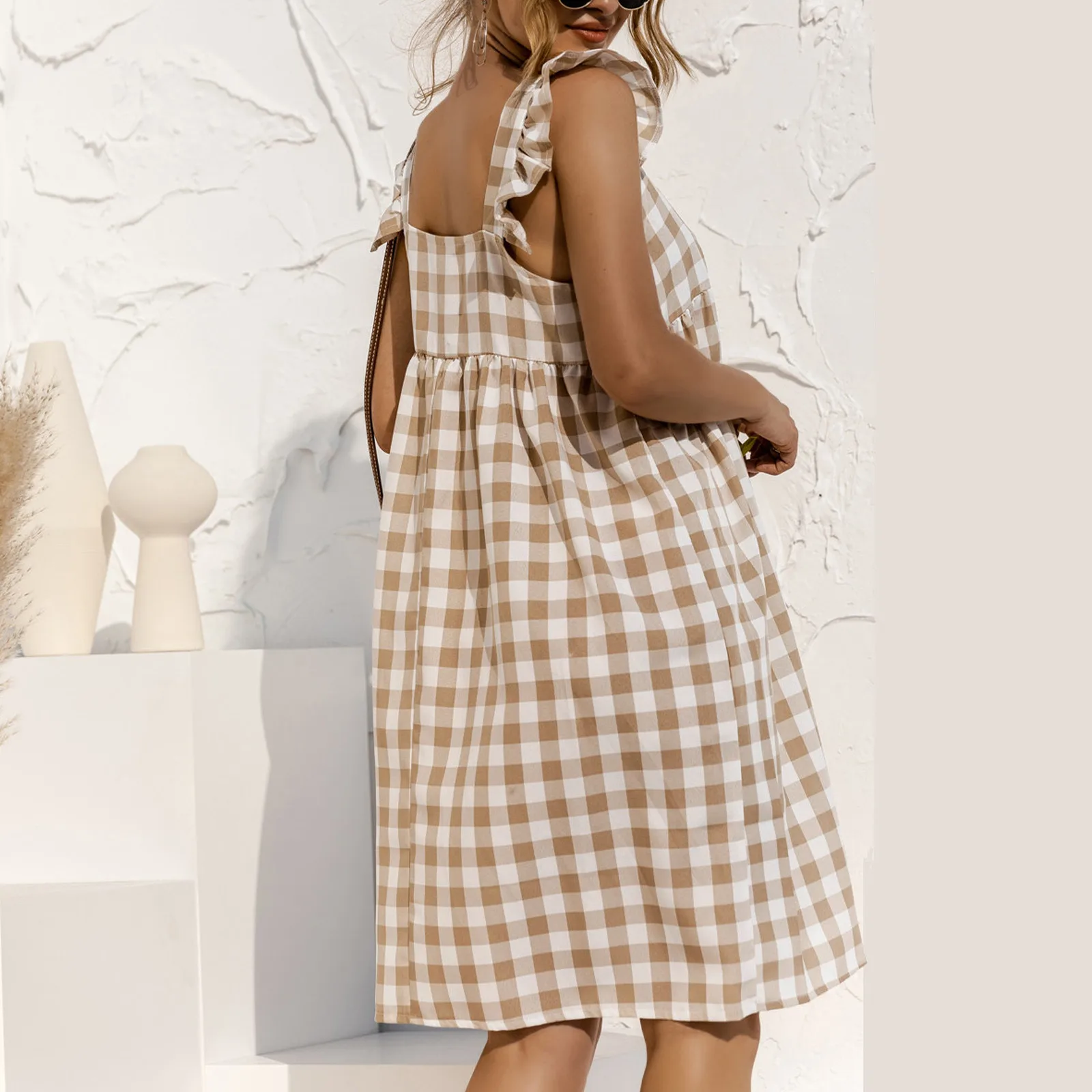 Женское Гавайское мини-платье, летнее Повседневное платье на бретельках с принтом 4 # в клетку, 2021