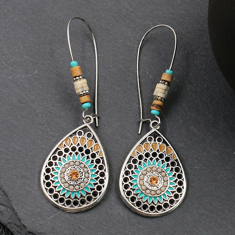 Винтажные богемные Висячие серьги для женщин, кристаллы, красочные бусины ручной работы, длинные серьги, эмалированные этнические богемные модные украшения