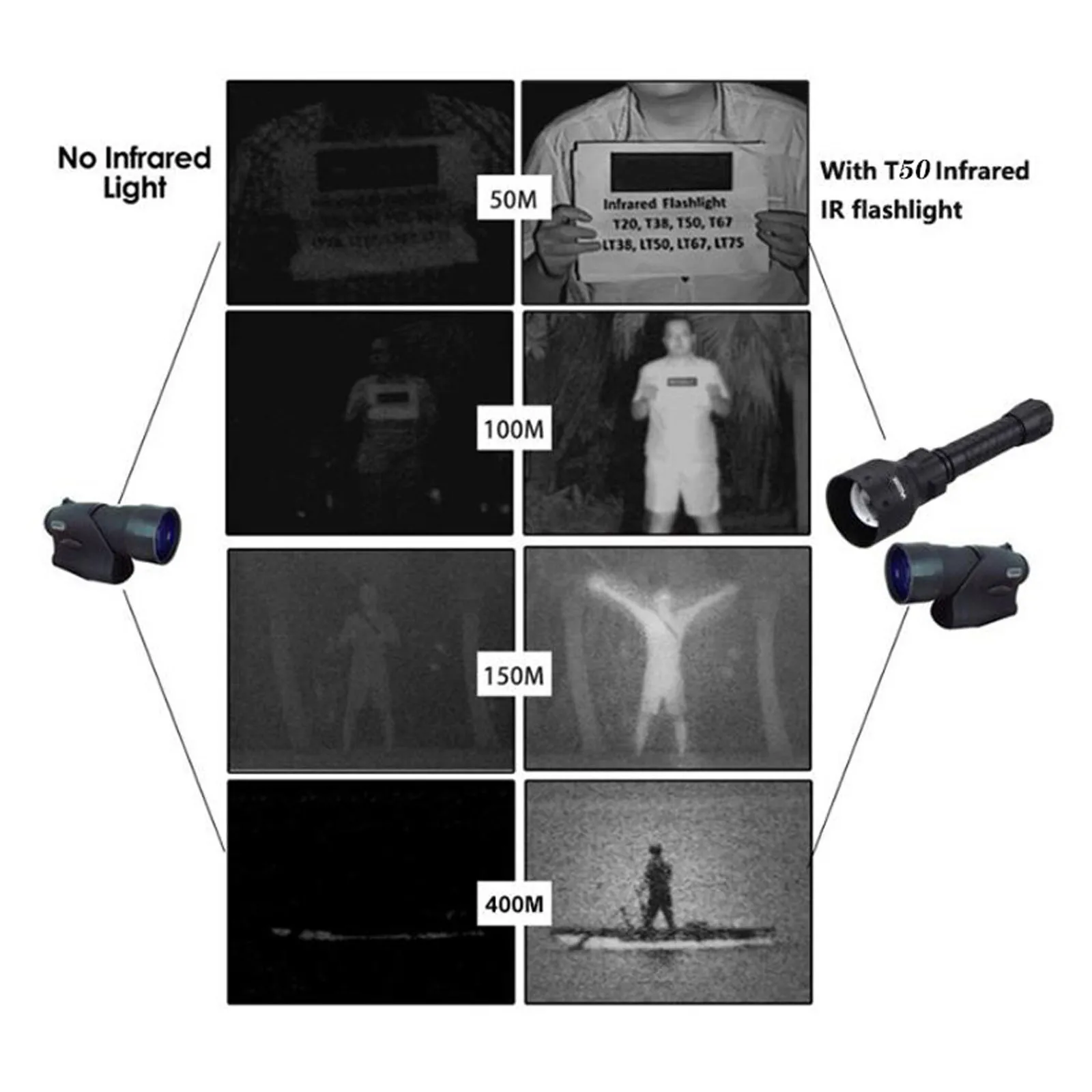 Инфракрасный тактический фонарь T50 с ночным видением, дальнего действия, 10 Вт, 850 нм, 940 нм