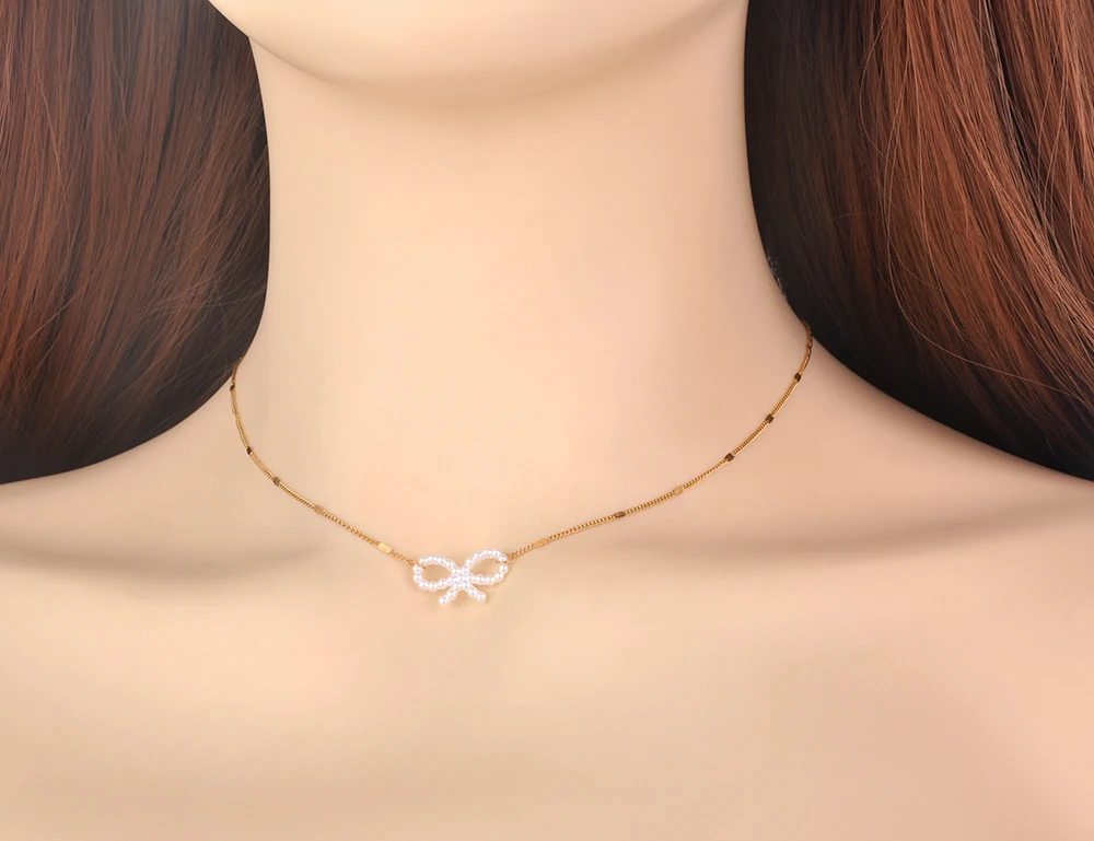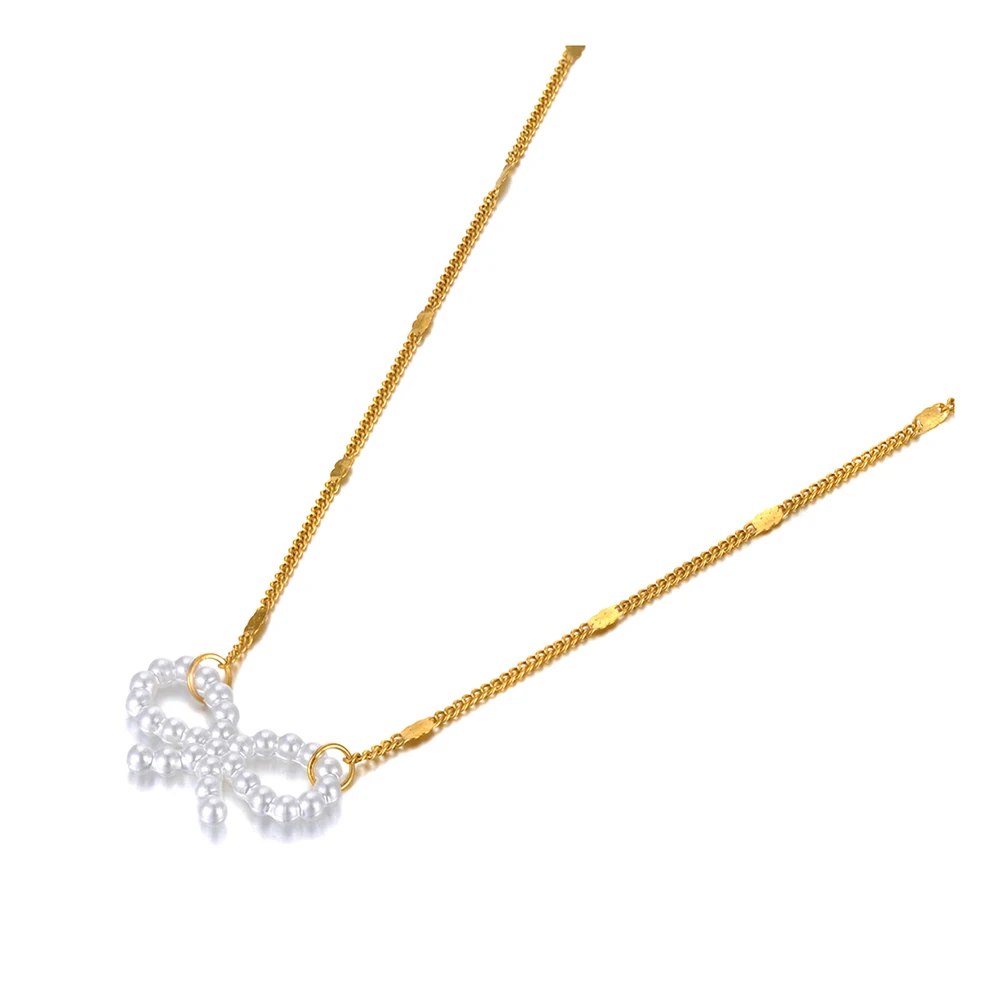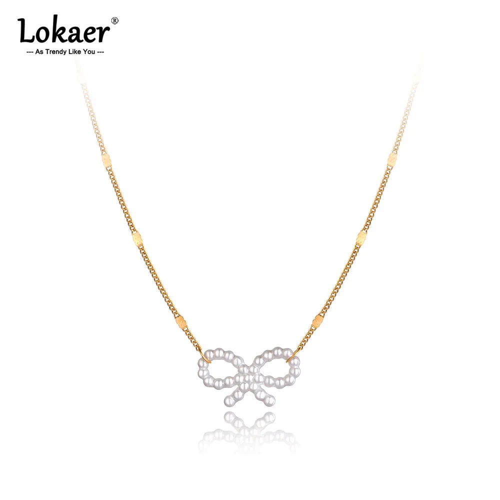 Lokaer Мода в богемном стиле из нержавеющей стали с белым жемчугом и бантом-узел колье ожерелье кулон на пляж ювелирные изделия для роковое женское колье-N21073
