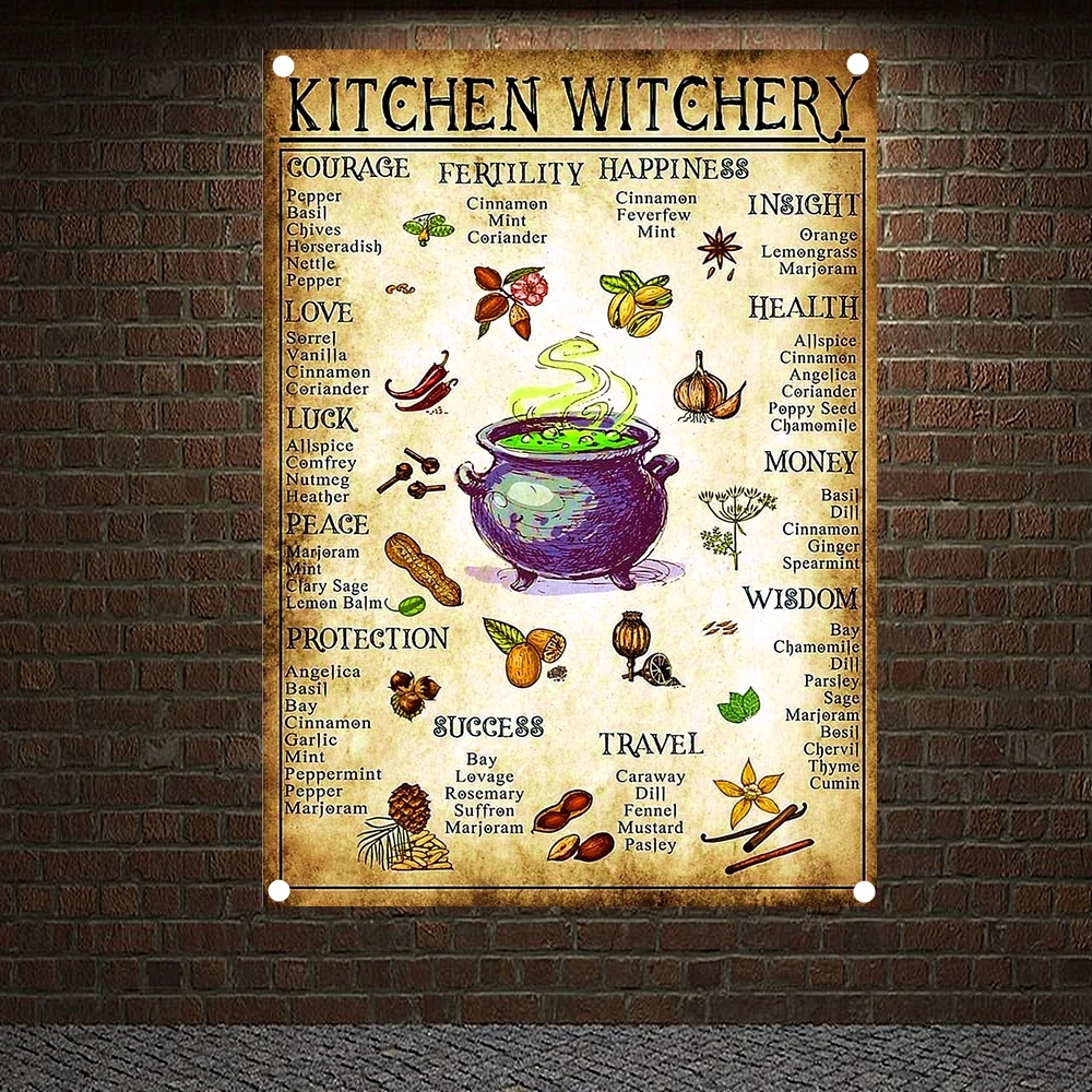 Винтажные баннеры для шеф-повара-кухни в стиле ведьмастера, подвесные тканевые флаги с четырьмя отверстиями, печатный плакат на холсте, настенное искусство, домашний декор