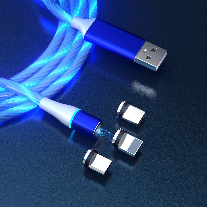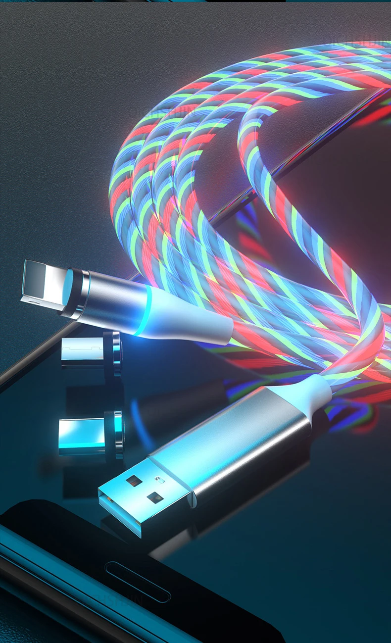 Магнитный кабель 3A для быстрой зарядки, светящийся кабель для пере...