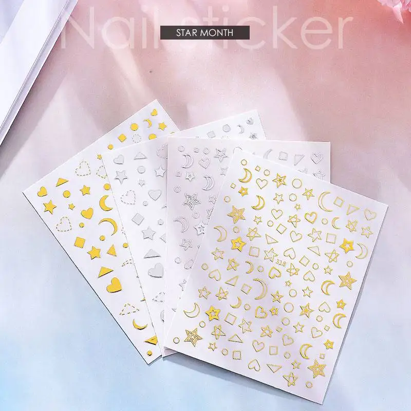 Луна Звезда Сердце Рождество дизайн ногтей Наклейка снежинки Рождество Золотой Серебряный