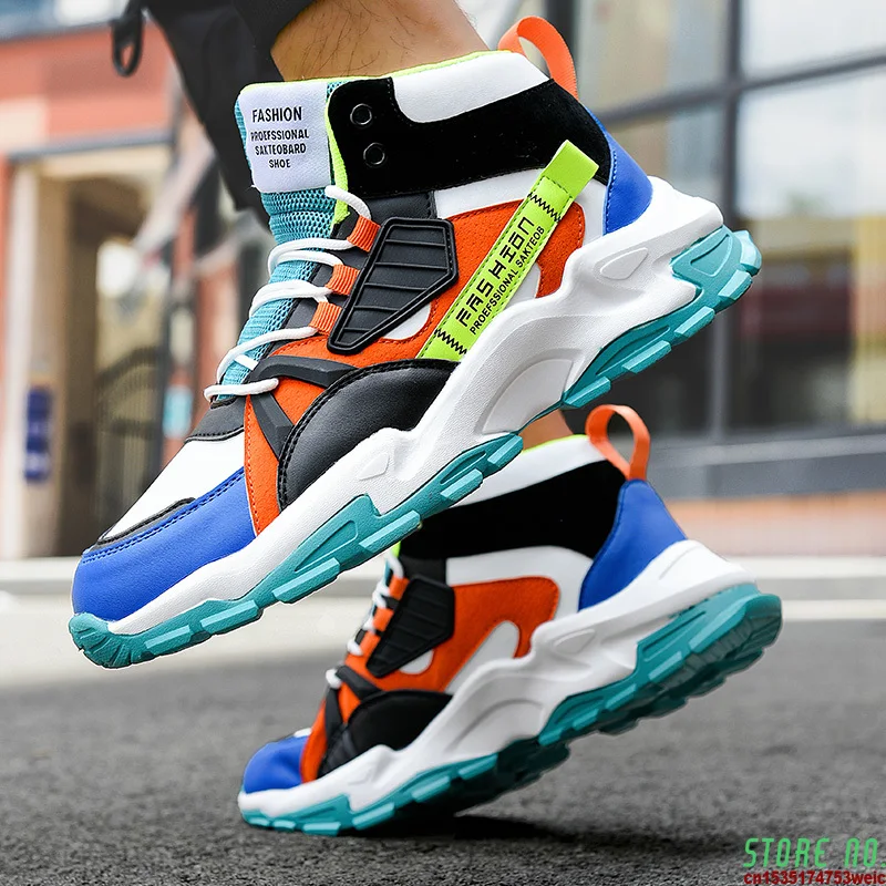 Мужские кроссовки для бега с высоким берцем, удобная спортивная обувь, Модная молодежная трендовая спортивная обувь для прогулок, уличные массивные кроссовки