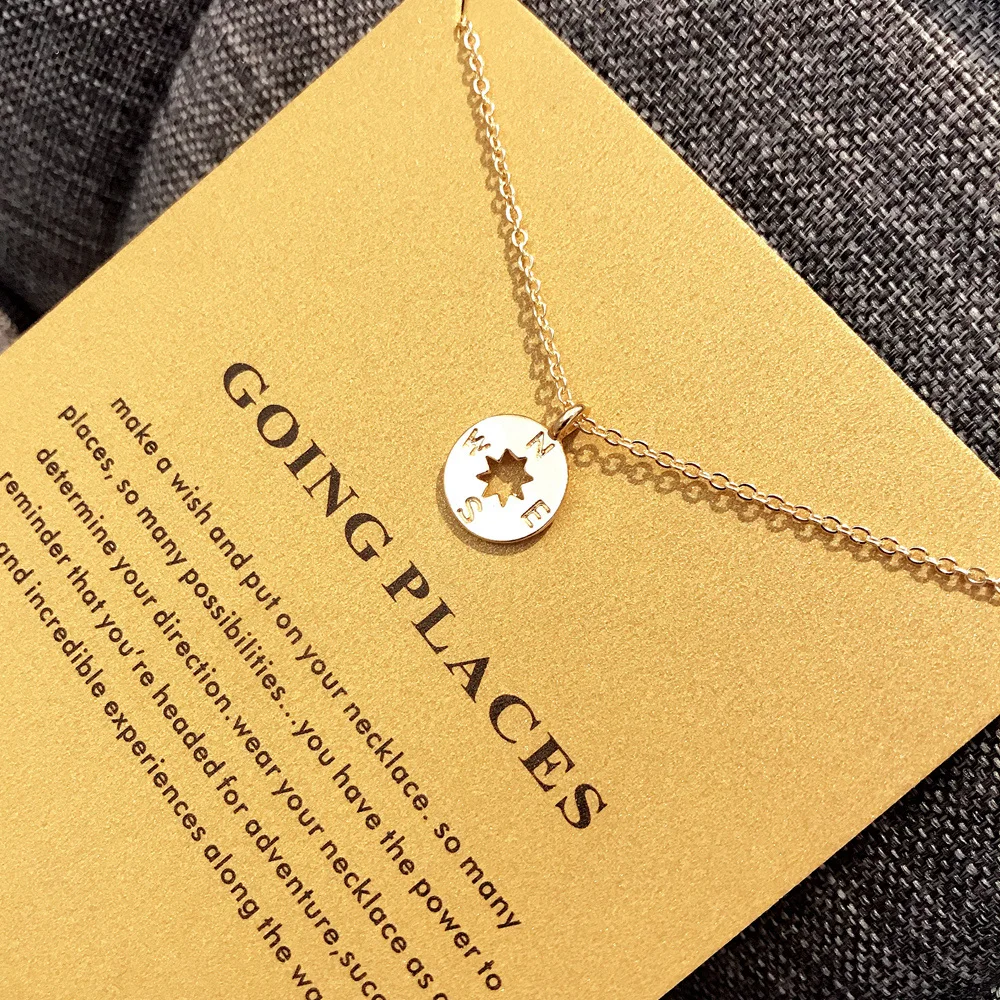 Трендовые места Северный компас со звездой ожерелья серебряное позолоченное сплав Шарм цепи Подвеска колье для женщин картон