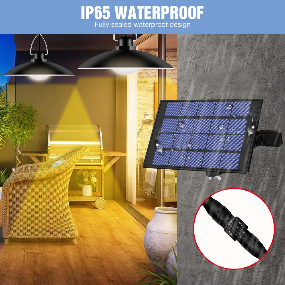 *Класс водонепроницаемости IP65, Герметичный Солнечный модуль. Он очень подходит для установки на потолочные подвески, крыши кабины, деревья, дверные проемы, сады, бары, Сараи или в любом месте на открытом воздухе, входы в дома или гаражи. Вы также можете разместить солнечные панели на открытом воздухе и установить лампочки в помещении для внутреннего освещения.