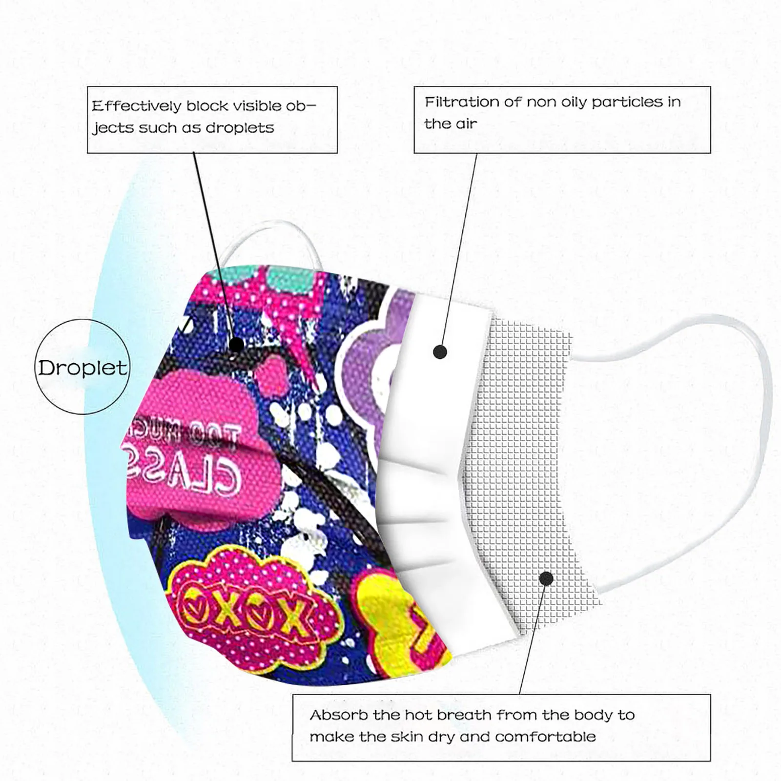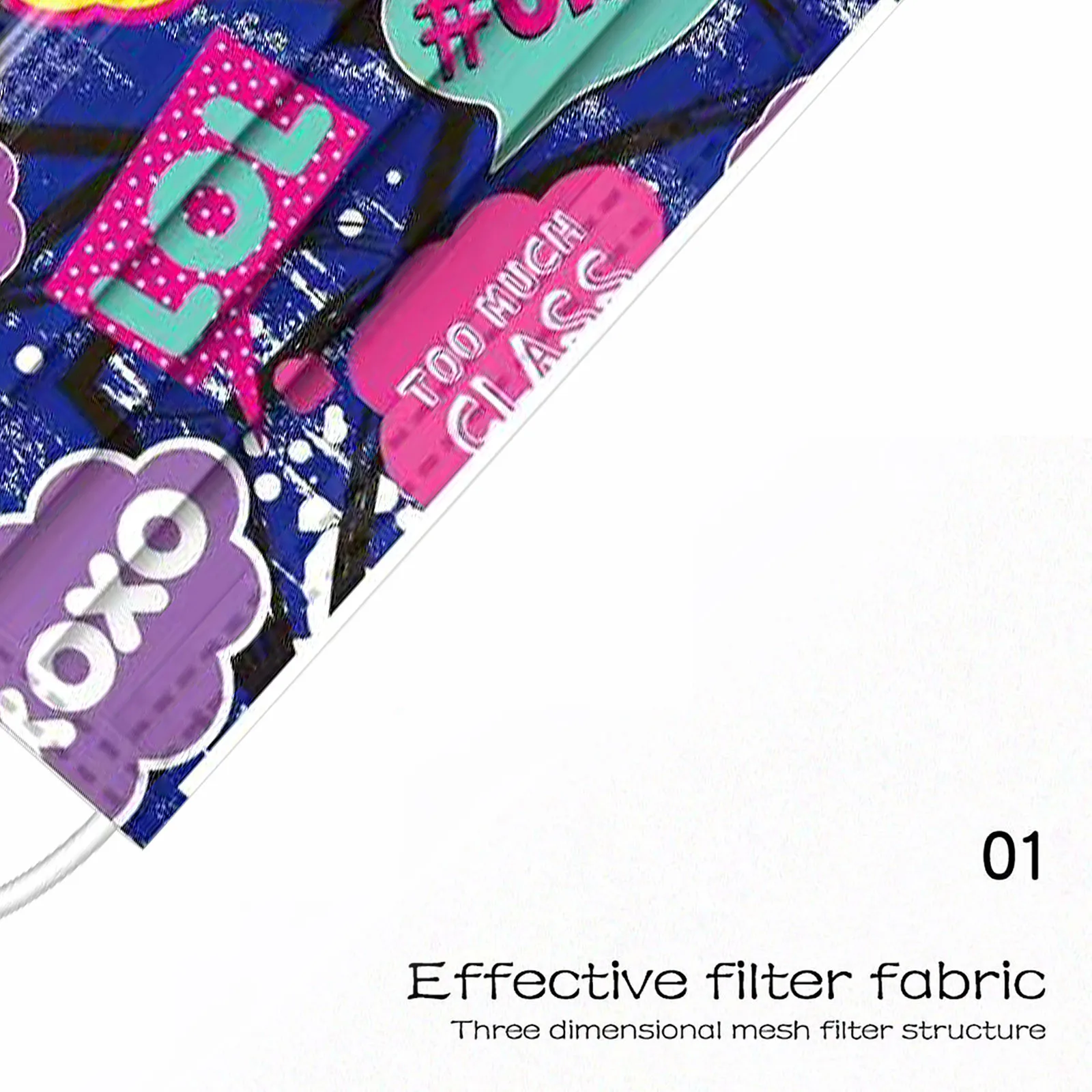 Трехслойная Нетканая одноразовая маска изготовлена из трехслойного нетканого материала, который безопасен и безопасен для использования. Дышащие материалы и милые узоры делают его практичным и стильным. Специальный трехслойный нетканый дизайн обеспечивает защиту от пыли, выхлопных газов автомобиля и пыльцы. Эластичный Заушник, легко носить и не давит на ухо. Маникюрный салон или любая другая область, которая может нуждаться в защите