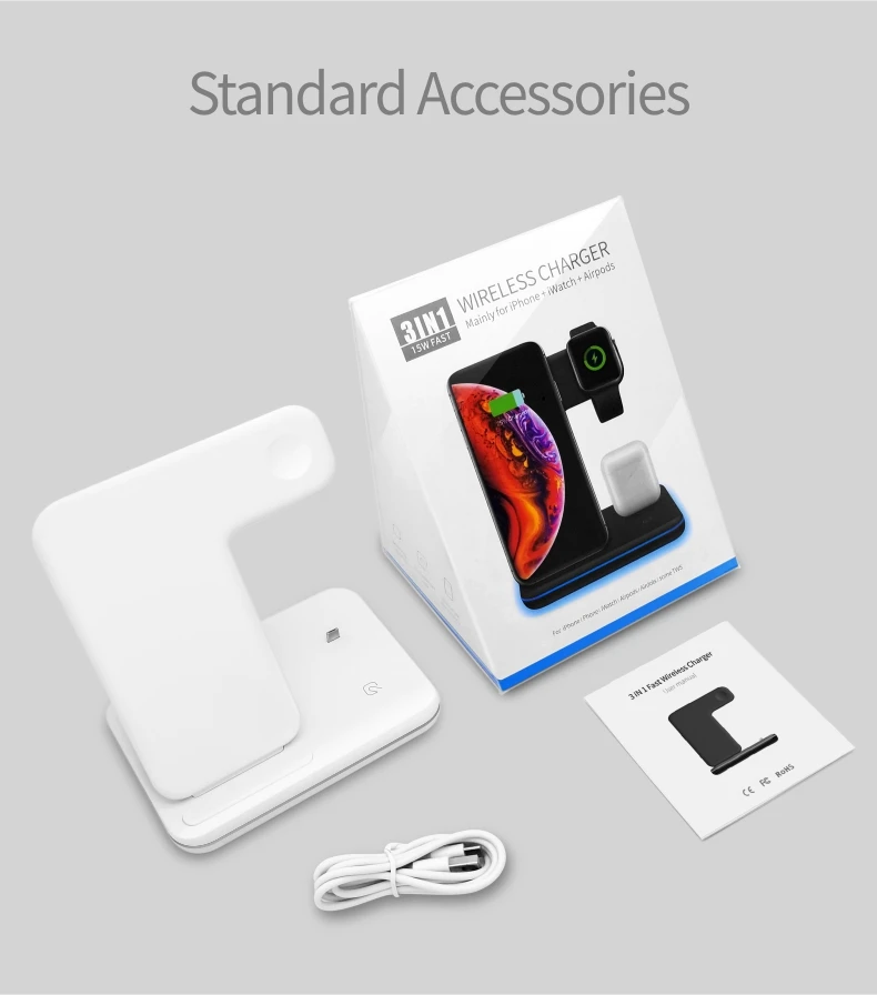 Беспроводное зарядное устройство Qi 3 в 1, 15 Вт, подставка для iPh...