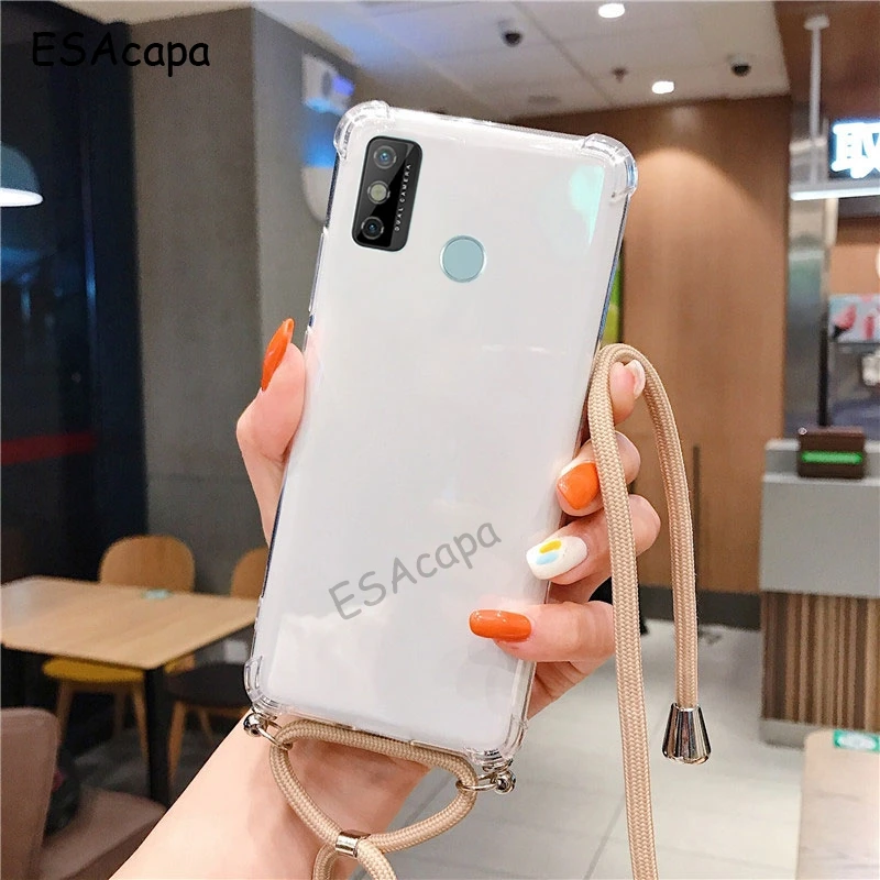Чехол для TECNO SPARK 6 GO 5 Pro с ремешком через плечо, шнур для Camon 15 air CD7, противоударный прозрачный мягкий чехол для телефона