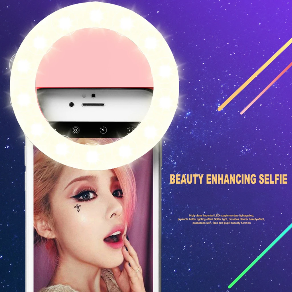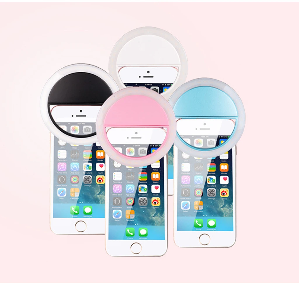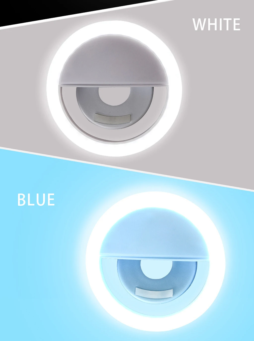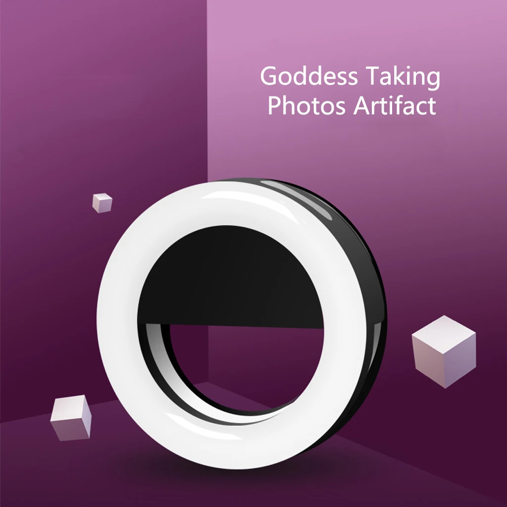 Кольцевой светодиодный светильник для селфи, лампа с кольцевым заполнением для телефона или камеры, с зарядкой через USB, с 3 уровнями яркости, с зажимом для IPhone, Xiaomi, Huawei