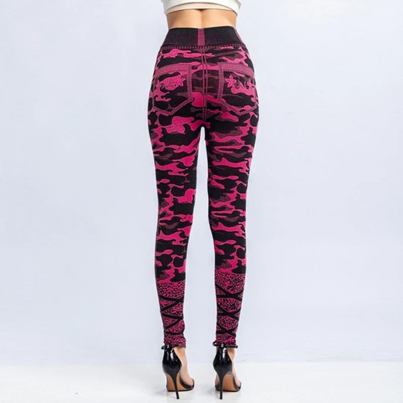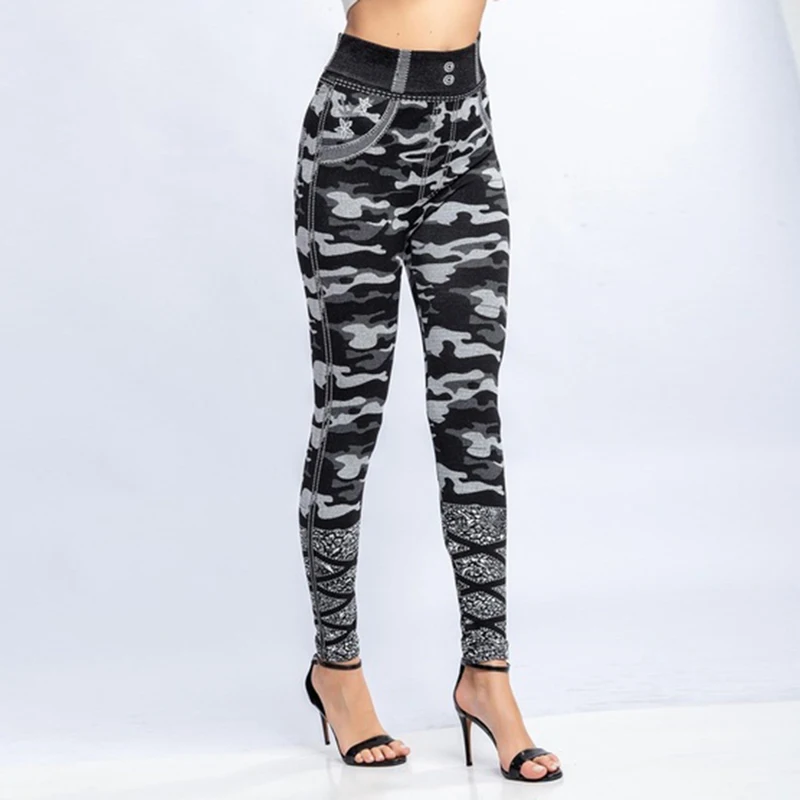 Женские леггинсы с имитацией джинсов, эластичные облегающие леггинс...