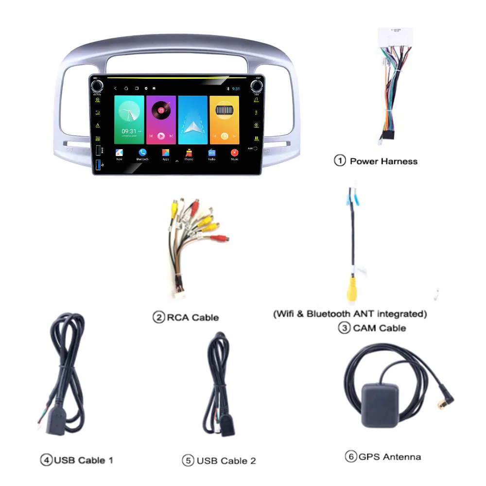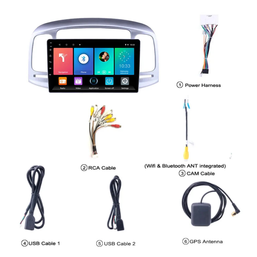 1 х Автомобильный радиоприемник Hyundai Accent Android1 х Кабель питания1 x Антенна GPS1 x вход камеры1 х RCA вход и выход2 x USB кабельРуководство по эксплуатации-1 шт.