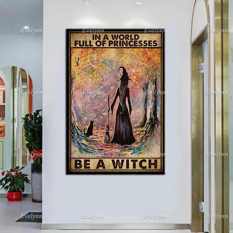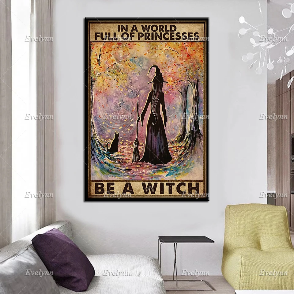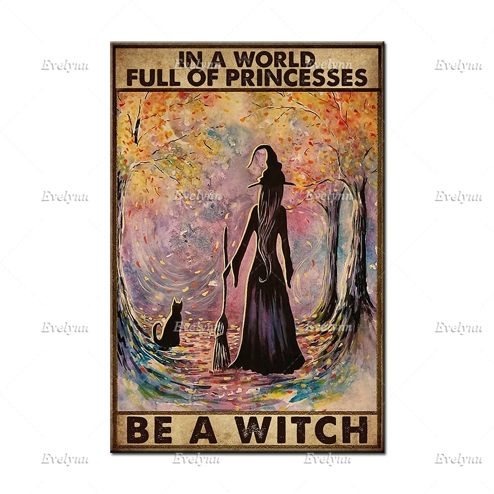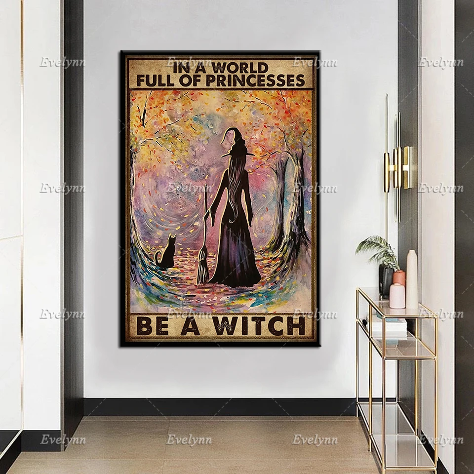 Ведьма колдовство девушка и кот в мире, полный принцесс быть ведьмой ретро постер Хэллоуин домашний живой декор настенные художественные принты