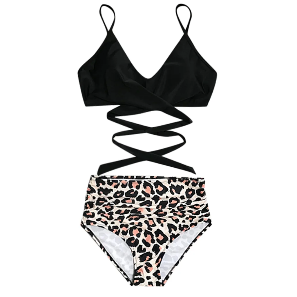 Женский модный комплект бикини без рукавов с леопардовым принтом, т...