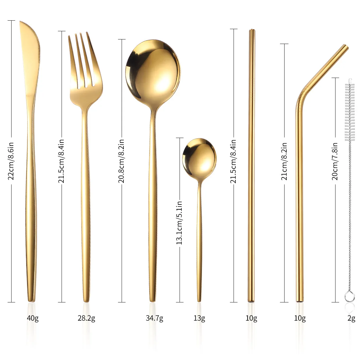 42 шт KuBac Hommi Позолоченные Нержавеющаясталь набор посуды с трубочкой, набор столовых приборов Цвет: черный, серебро Прямая доставка