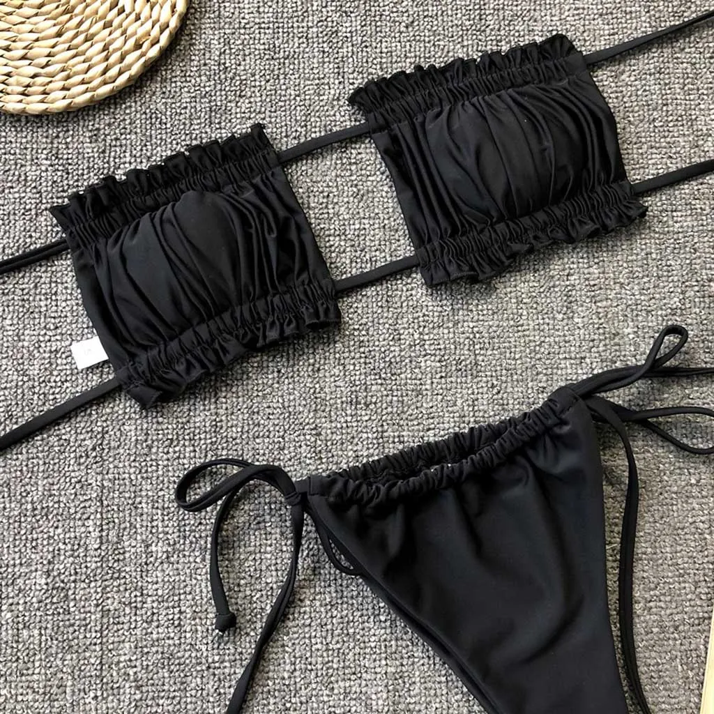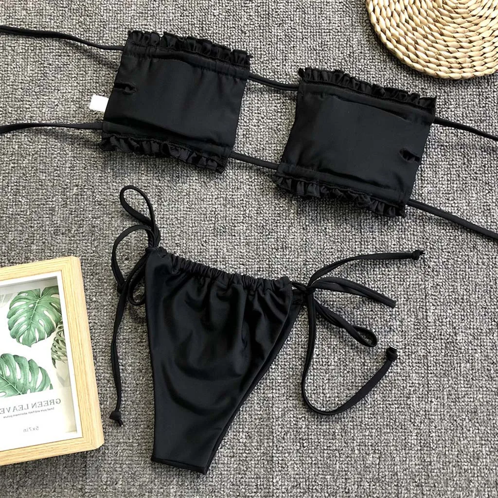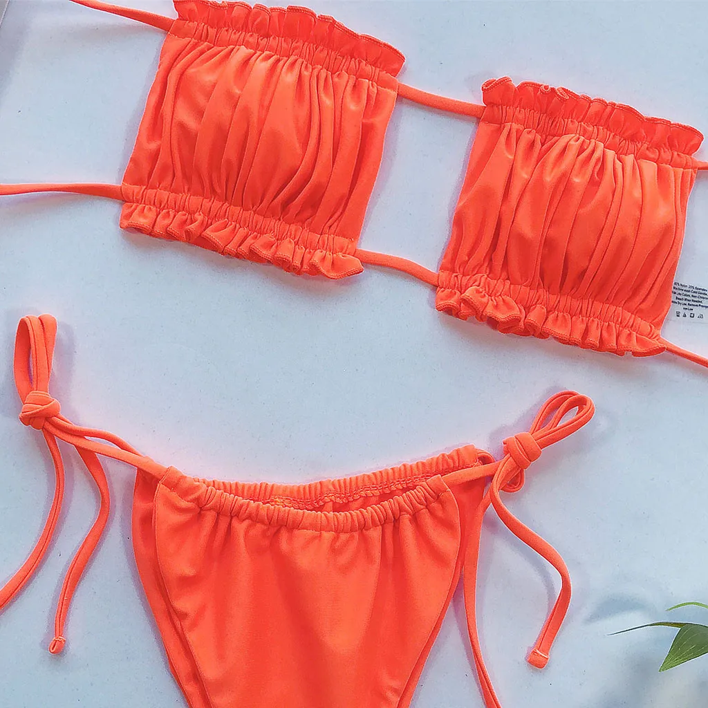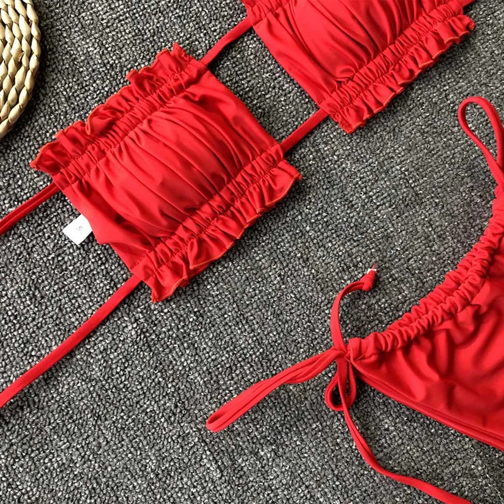 Бикини 2021, женское пикантное бикини с рюшами, пуш-ап, Мягкий купальник, купальник, комплект пляжной одежды, купальный костюм, женский купальник #6