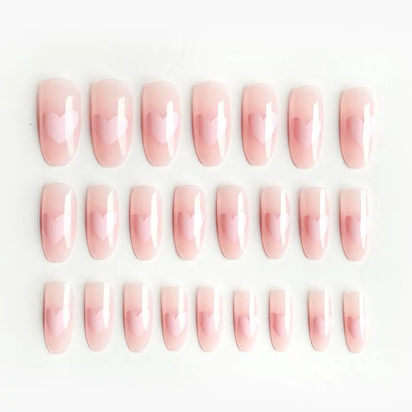 24 шт./компл., красивые розовые Искусственные ногти, круглые жемчужины, узор в виде сердца, свадебные ногти для невесты с клеем, красота, маникюр, Полные Советы