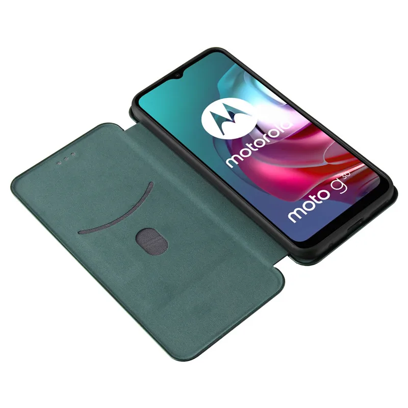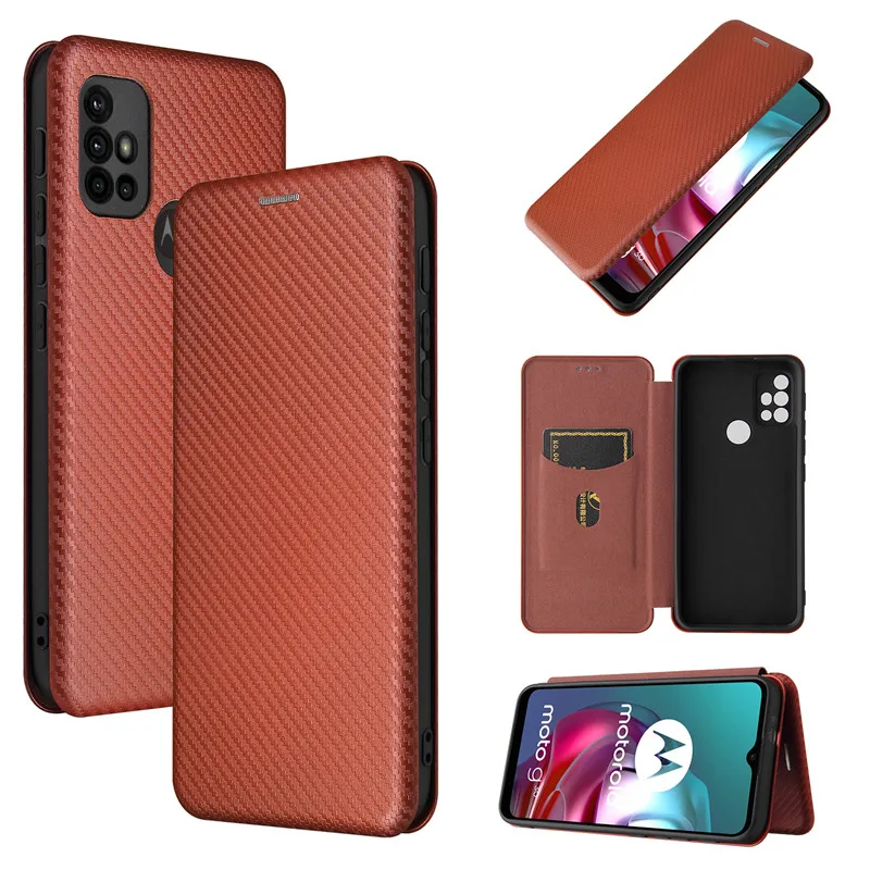 Чехол-книжка для Motorola Moto G30 из углеродного волокна, кожаный ...