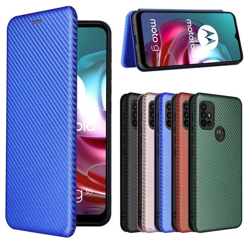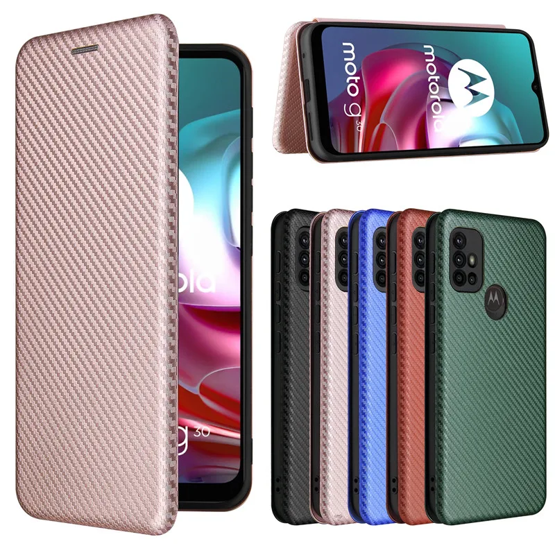 Для Motorola Moto G30 чехол 6,5 "углеродного волокна Флип раскладный кожаный чехол для Moto G30 XT2129-2 деловой с магнитной застежкой и отделением для карт чехол