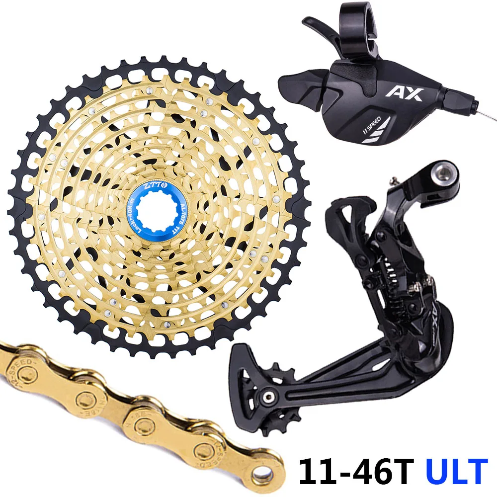 11-скоростная кассета с золотым покрытием 11-46T + Золотая цепь 116 звеньев + переключатель передач и переключатель передач 11 S