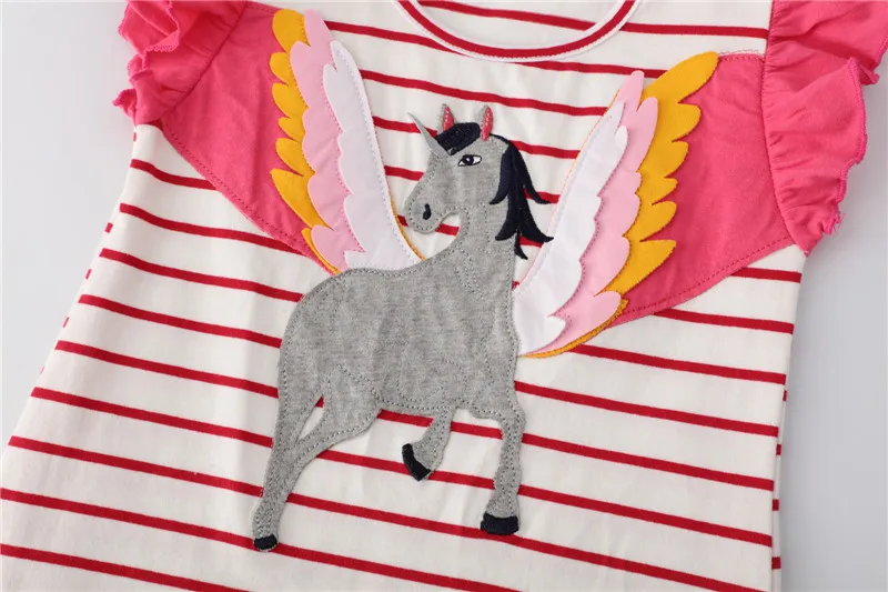 2021 платье для девочек, платья, летние костюмы, детская одежда, с вышивкой единорога, Vetement Fille Roupa Infantil Menina