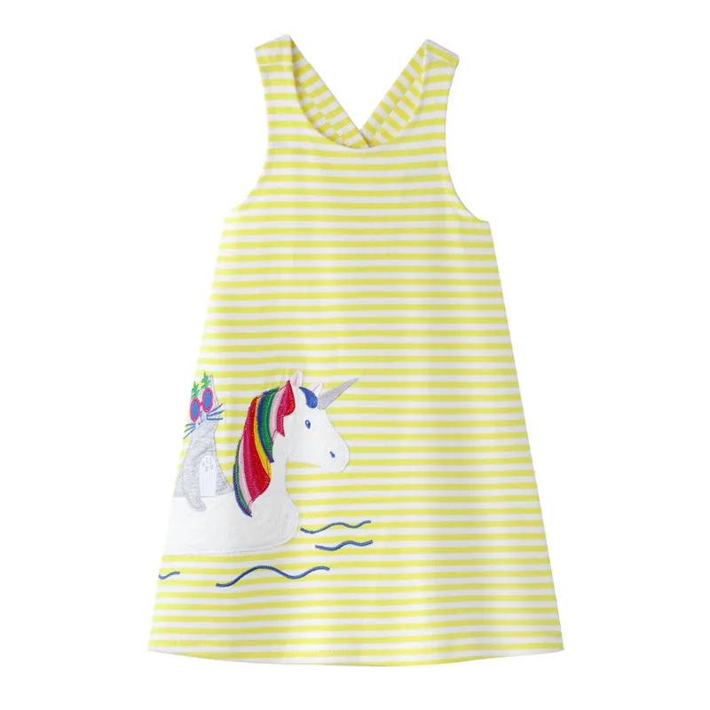 2021 платье для девочек, платья, летний костюм, детская одежда с вышивкой единорога, одежда для девочек