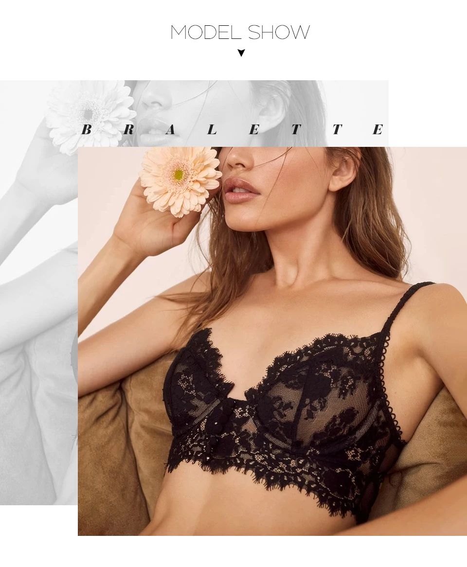 Комплект женского нижнего белья, кружевной бюстгальтер с эффектом ресниц и трусики