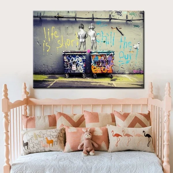 Граффити уличное искусство два обнаженных непослушных детей холст живопись плакаты и принты настенное искусство для гостиной домашний Декор (без рамки)