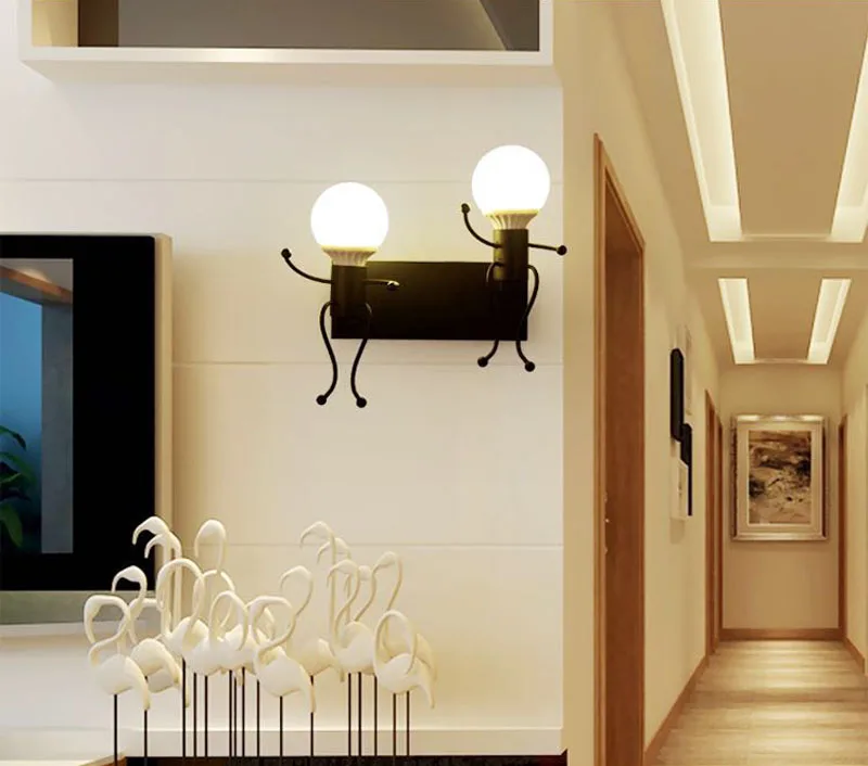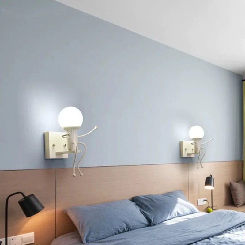 Креативная светодиодная настенная люстра 5 Вт 7 Вт, скандинавский маленький прикроватный светильник Железный человек для спальни, декоративная лампа для детской комнаты, гостиной