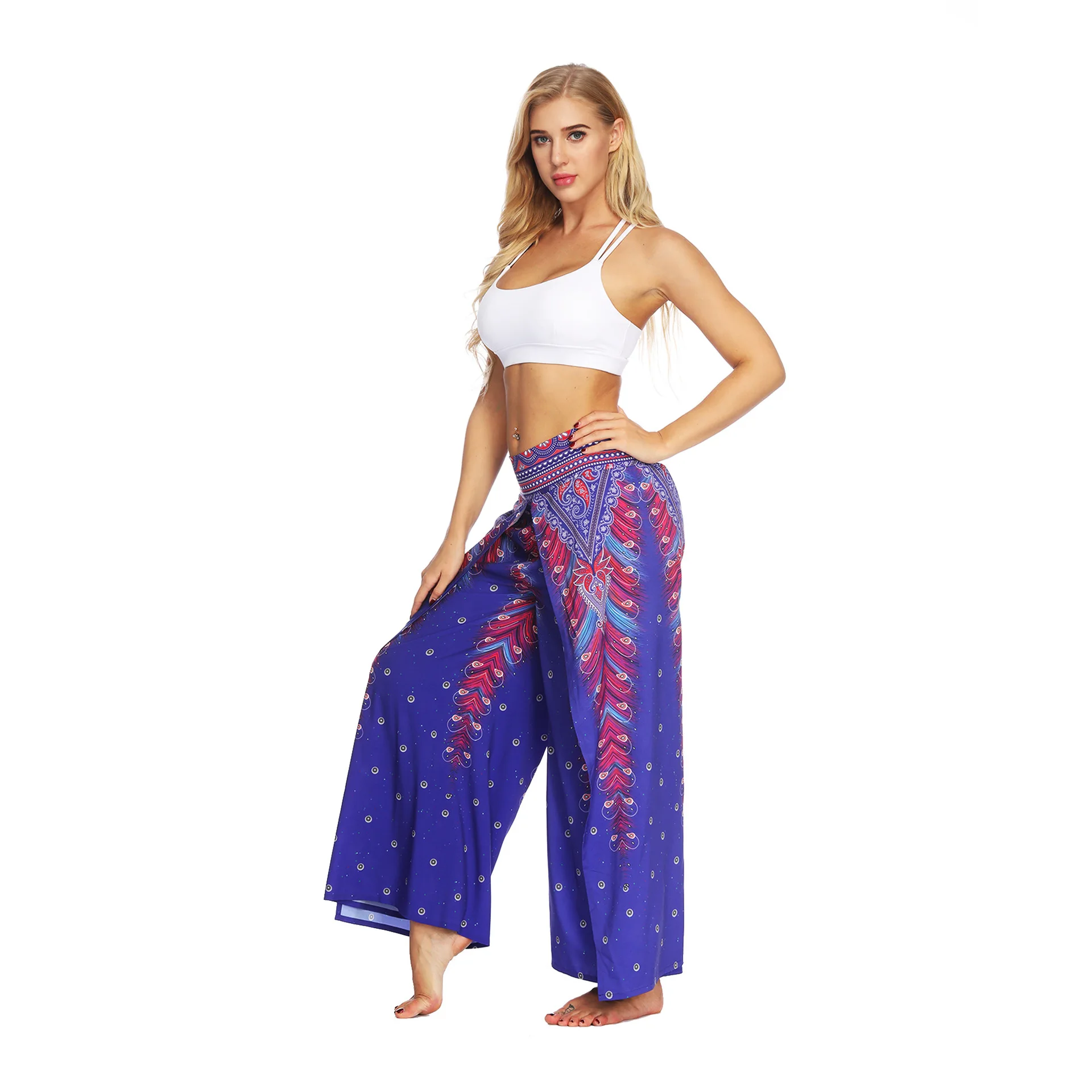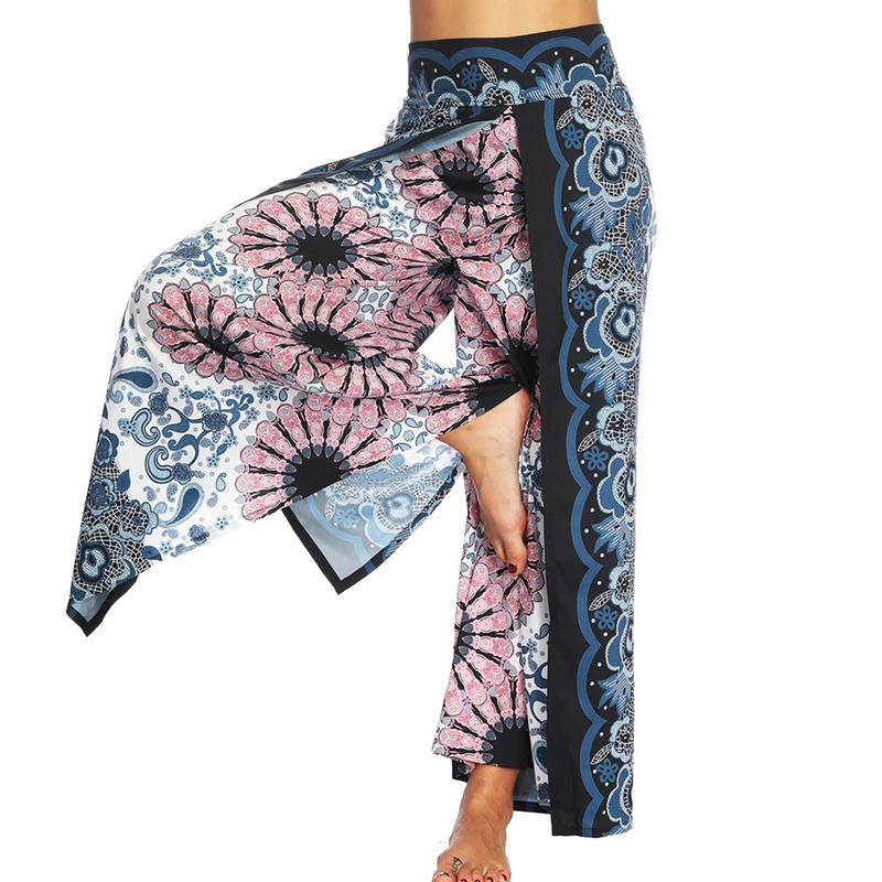 Богемные штаны для фитнеса и йоги, спортивная одежда, женские повседневные штаны, индонезийский стиль, широкие штаны с принтом, штаны для фитнеса с высокой талией