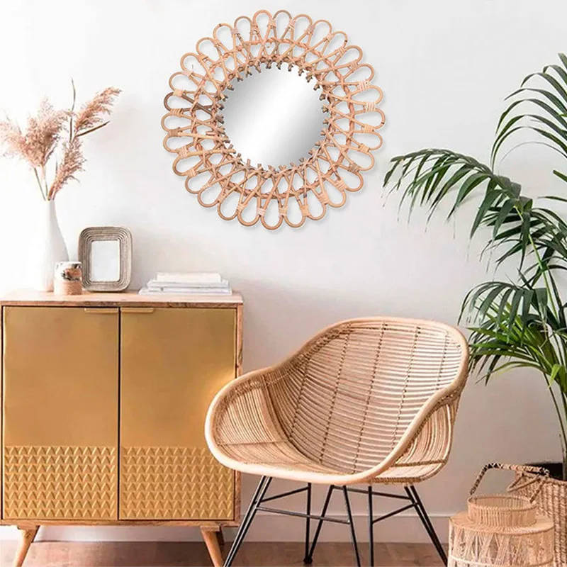 Вязаное зеркало ручной работы с плетеной оправой в стиле бохо декоративное украшение для дома EIG88