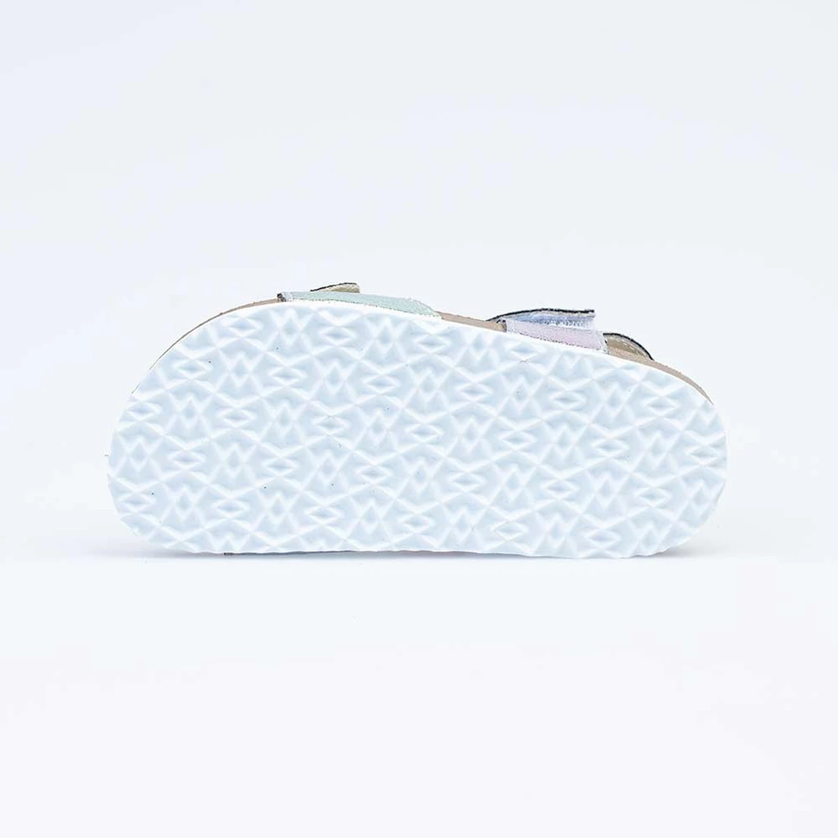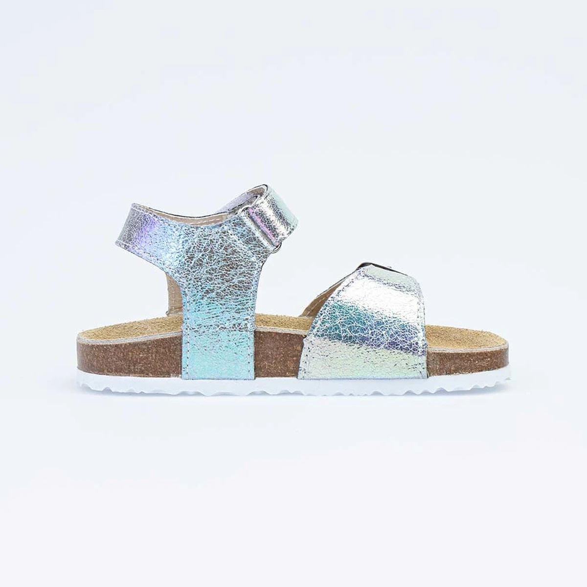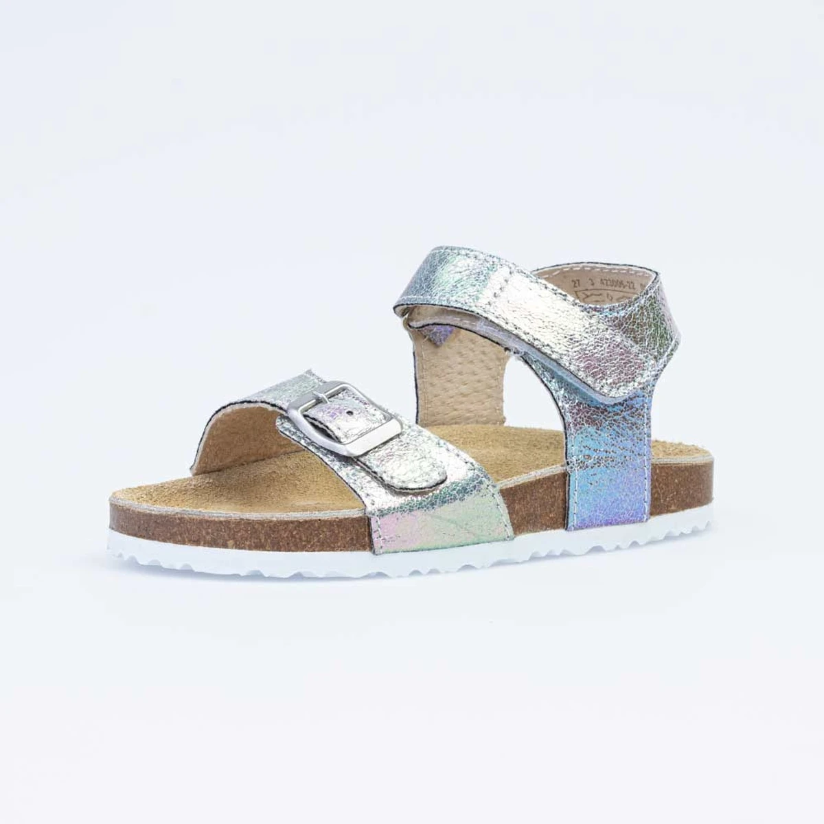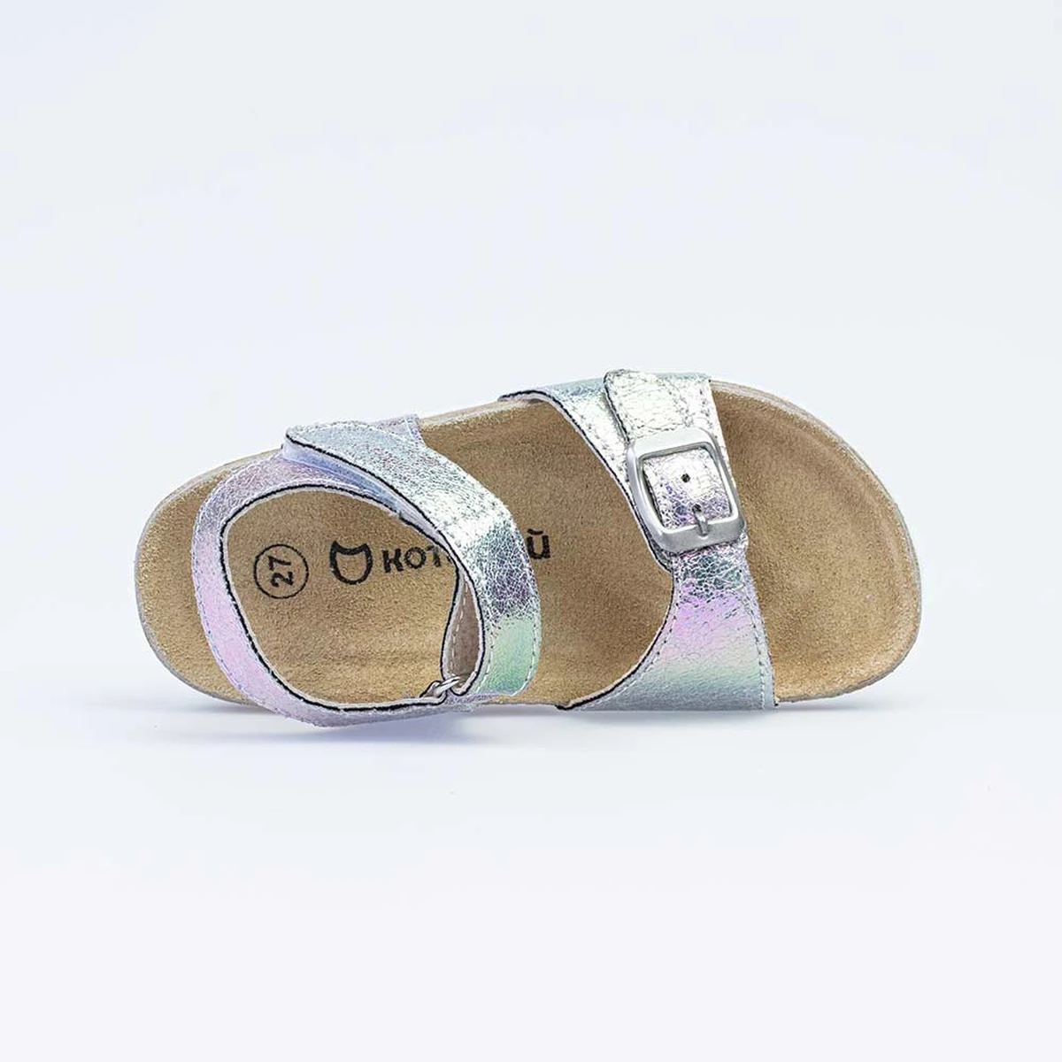 Сияющие летние туфли для настоящих модниц.Модель изготовлена из искуственной кожи, имеет лёгкую пробковую подошву. Два регулируемых ремня позволяют добиться идеальной посадки на стопе, что очень удобно для ребенка, как с низким, так и с высоким подъемом.
