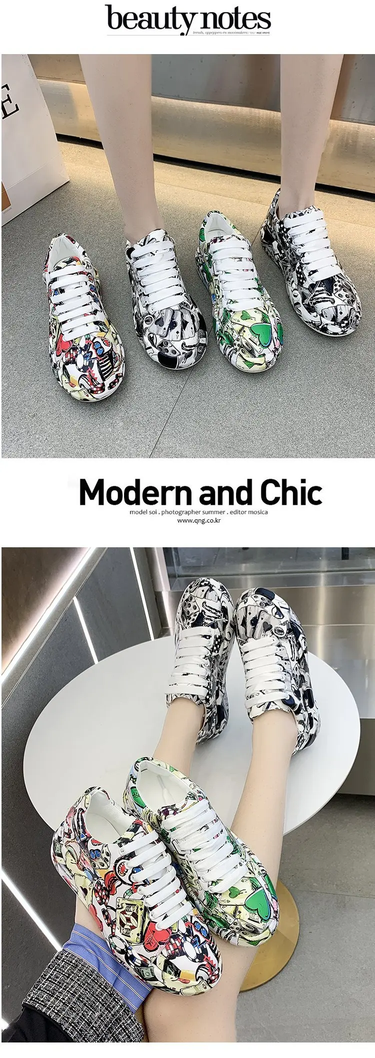 Женские повседневные туфли на толстой подошве с граффити 2021 женск...