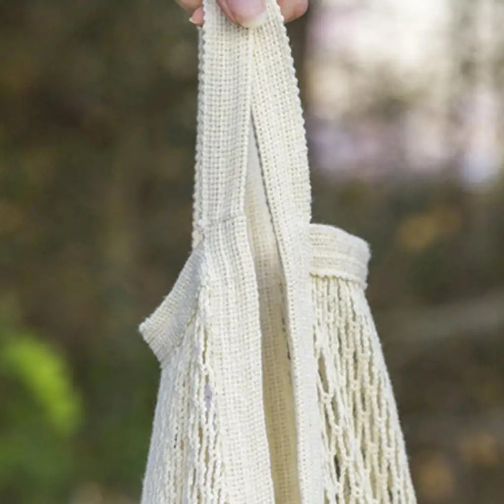 Многоразовые мешки для продуктов, портативные моющиеся хлопчатобумажные сетчатые сумки-органайзеры с короткими ручками, для фруктов и овощей, тоут